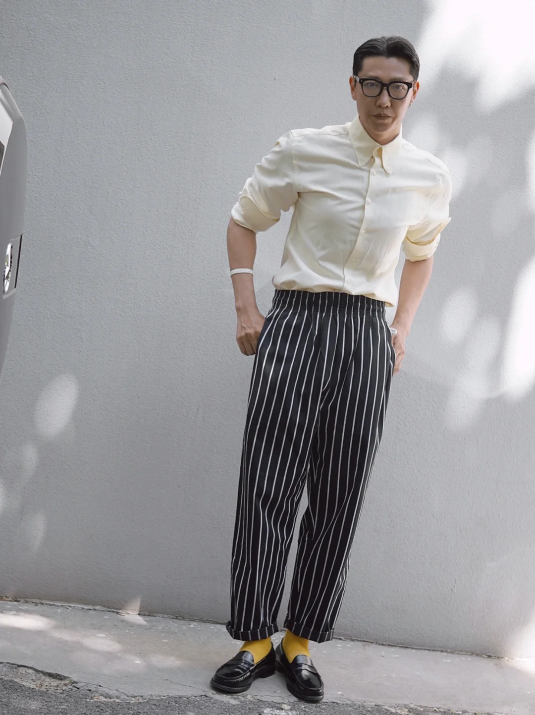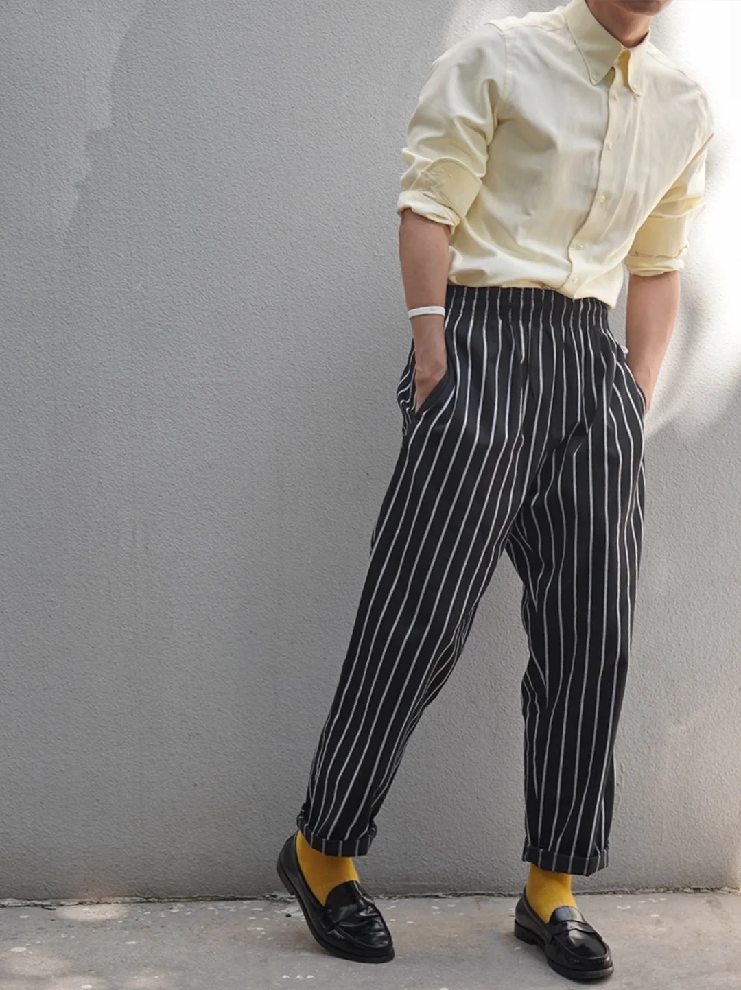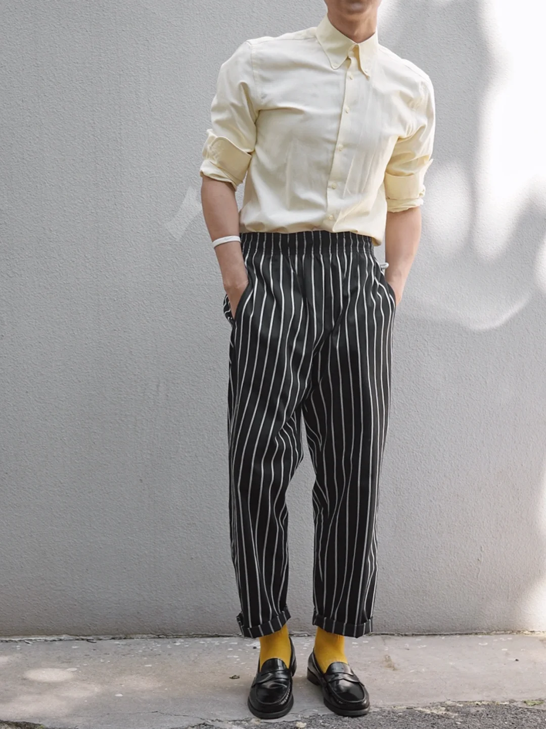 🟰黑白条纹厨师裤搭配🧈黄油色衬衫,再踩上一双普普通通的黑色浅口乐福鞋,让你在不同的年龄层里展现出独特的魅力与品味!