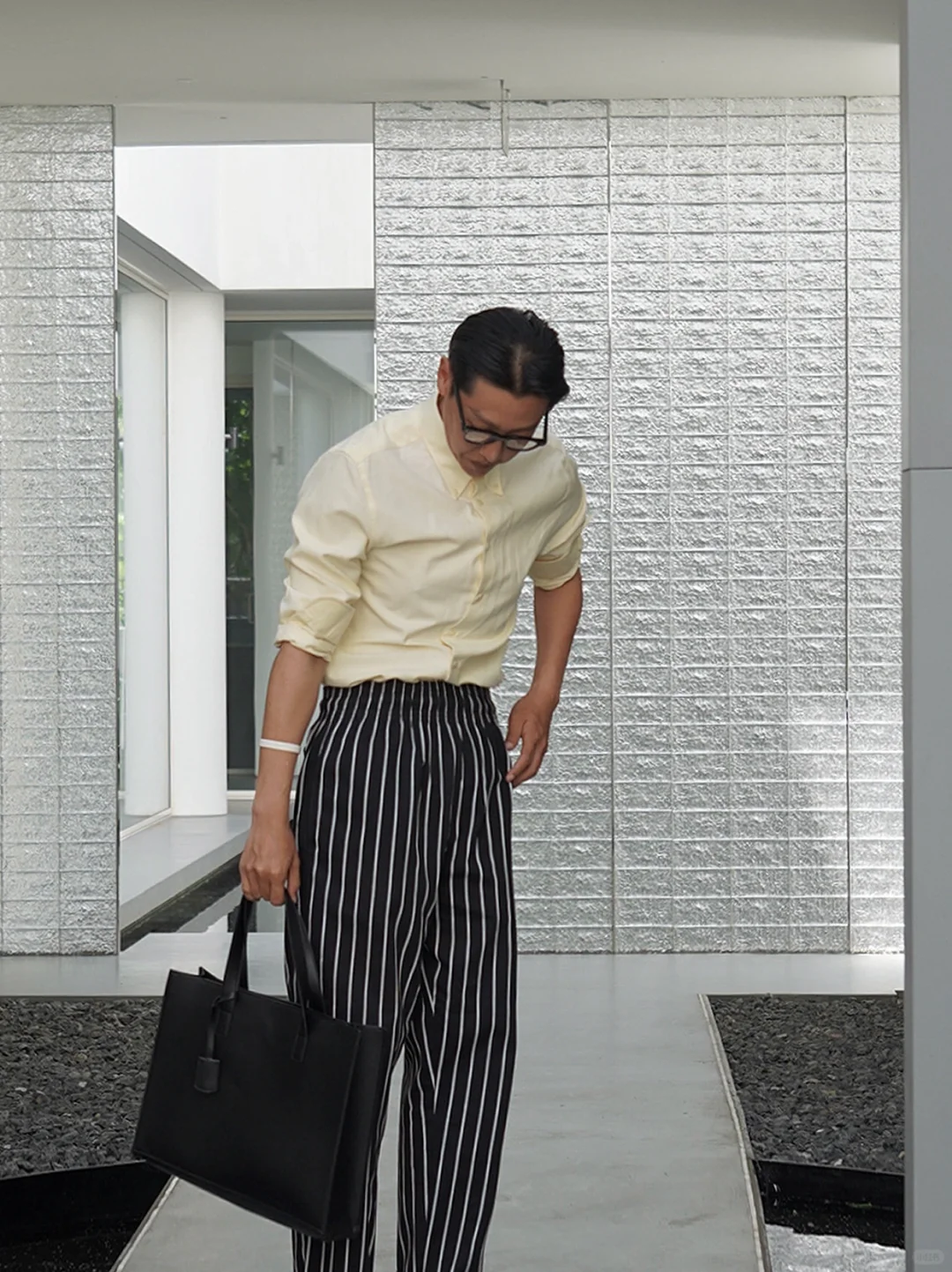 我个人非常喜欢托特包,既能装下你的工作物品,又能提升整体造型的质感。主打一个配色协调,低调不抢戏。