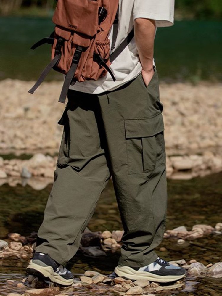 男士卡其色工装裤子男夏季薄款机能冲锋伞兵裤休闲裤男款2024新款
