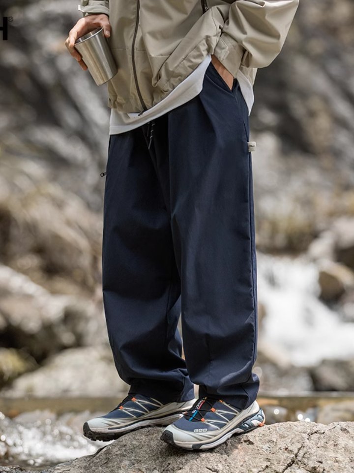 男士冲锋裤藏青色裤子男款春秋直筒工装裤潮