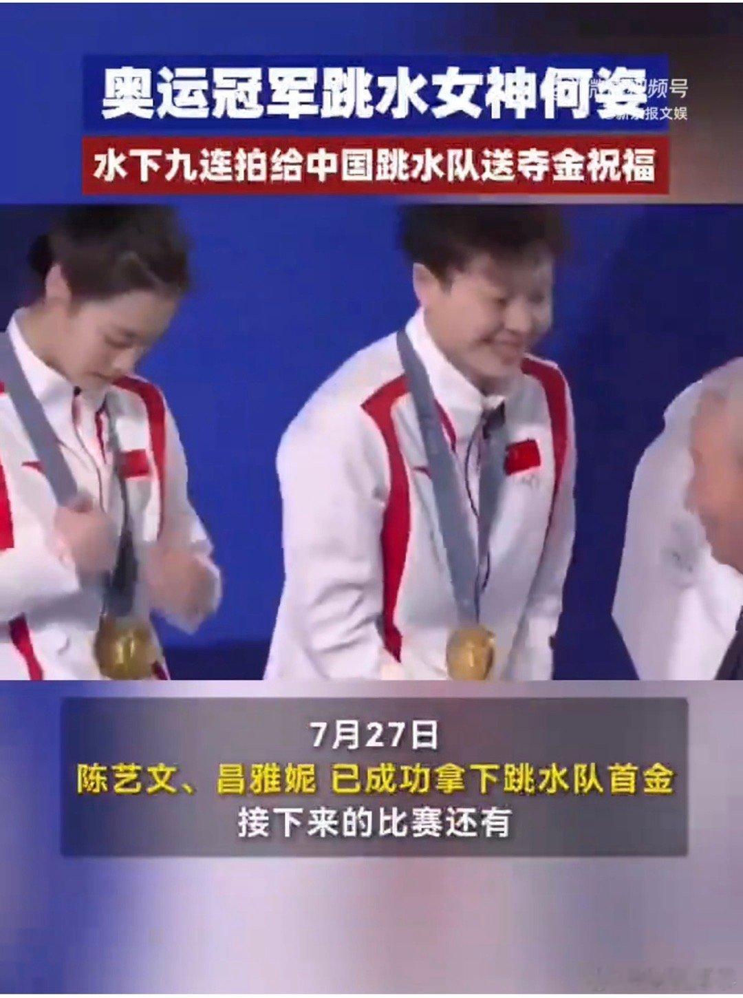 #前奥运冠军何姿恭喜中国跳水队夺得首金#能够拿下这么好的成绩,我们跳水队真的很厉害,而且看到前奥运冠军的水下应援也是非常硬核,相信奥运健儿的能力。 #奥运冠军何姿水下应援中国跳水队#