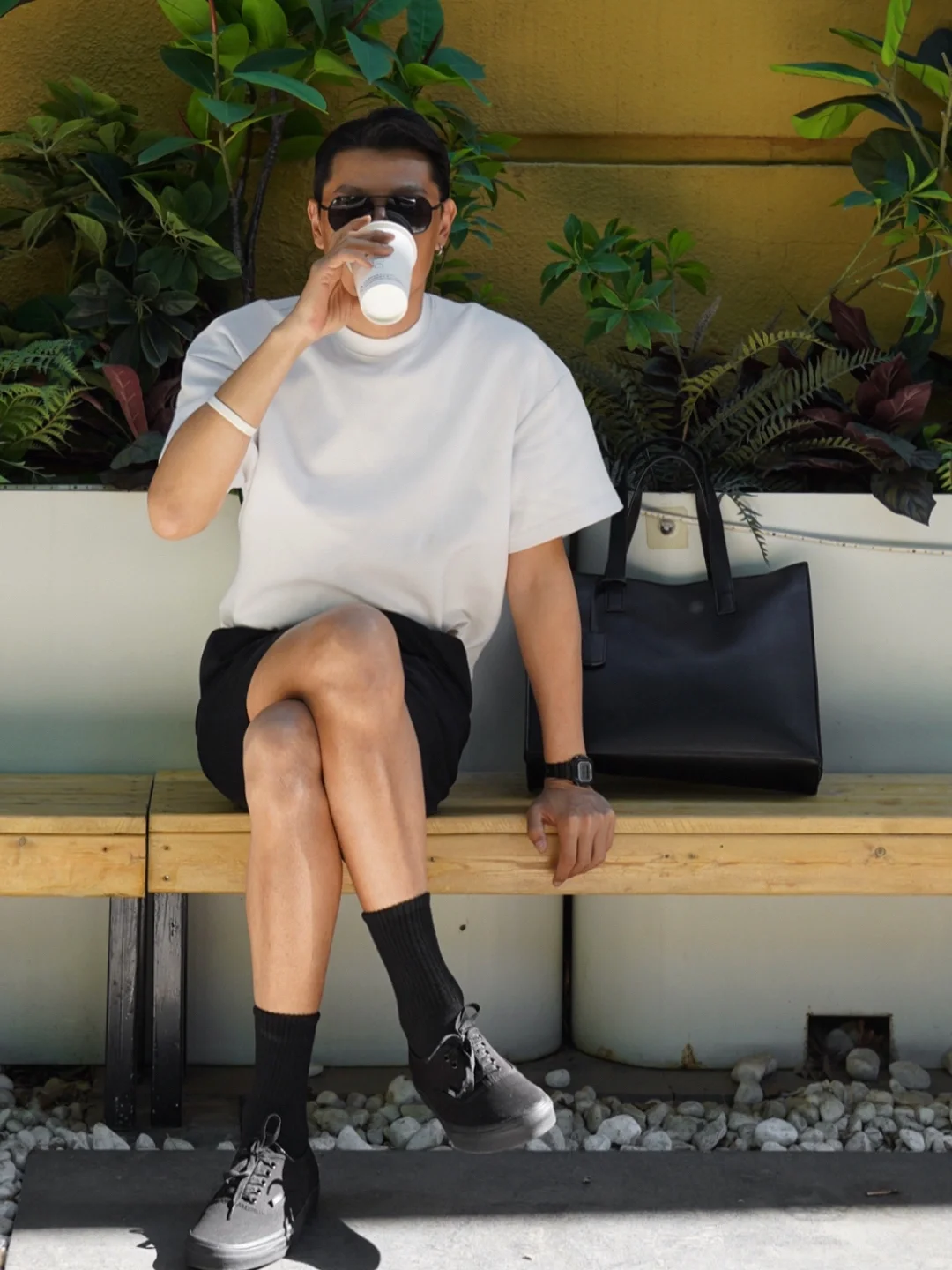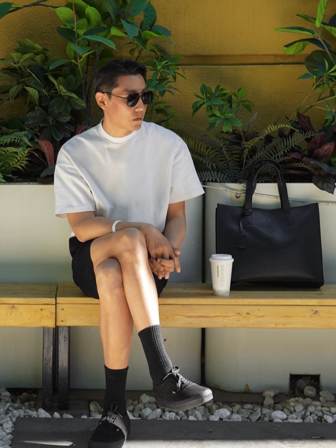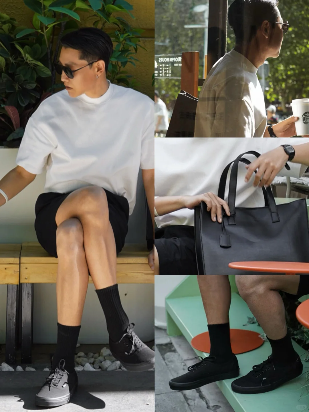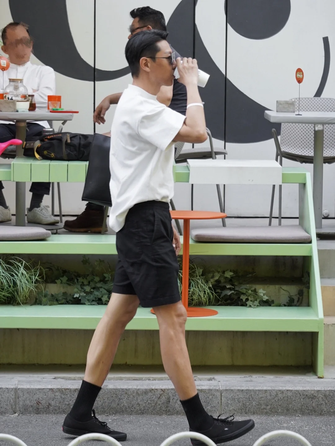 日常|舒适|通勤 👆🏽经典的黑白穿搭配色,不出错!很出彩! 白T+黑色短裤+帆布鞋 妥妥的夏季不费力穿搭 主打cleanfit风格&美式街头 一杯咖啡☕️一个下午 北京暴雨⚡️🌧️工作结束 下班!🙃