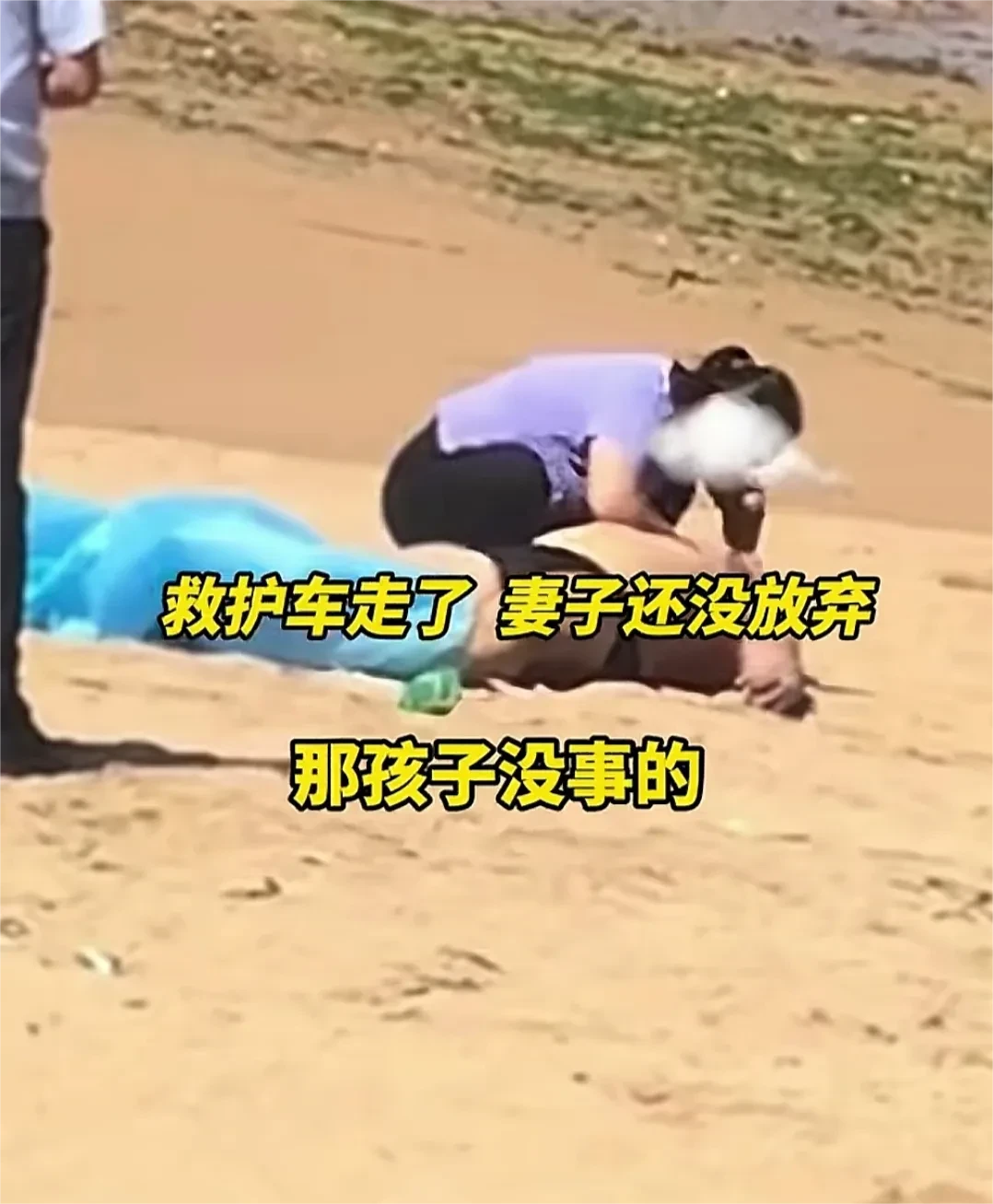 救护车走了,妻子没放弃 7月28日山东青岛 孩子跑深水区玩落水父亲下海去救孩子被海浪卷走了,一名套着游泳圈的游客下海救援,在海里托着,把他拖上来,海浪太大了上不来,后面救援队救上来没有抢救过来。万幸的是孩子没事。 救护车走了,他的妻子没有放弃,给他做人工呼吸。 那位套着游泳圈的游客上岸,妻子带着孩子紧紧牵着他的手不放开。在他下水救人时,妻子和孩子也担心他安全的吧! 这位套游泳圈的大哥很善良,也很勇敢,为他点赞 这个孩子以后都活在爸爸为了救他死了的阴影里……但是换做任何一位爸爸,再一次也还是义无返顾 最后那个画面让人太心酸了,妻子可怜又无助的感觉,明明不会急救,却用最笨拙的动作表达最深的爱意。
