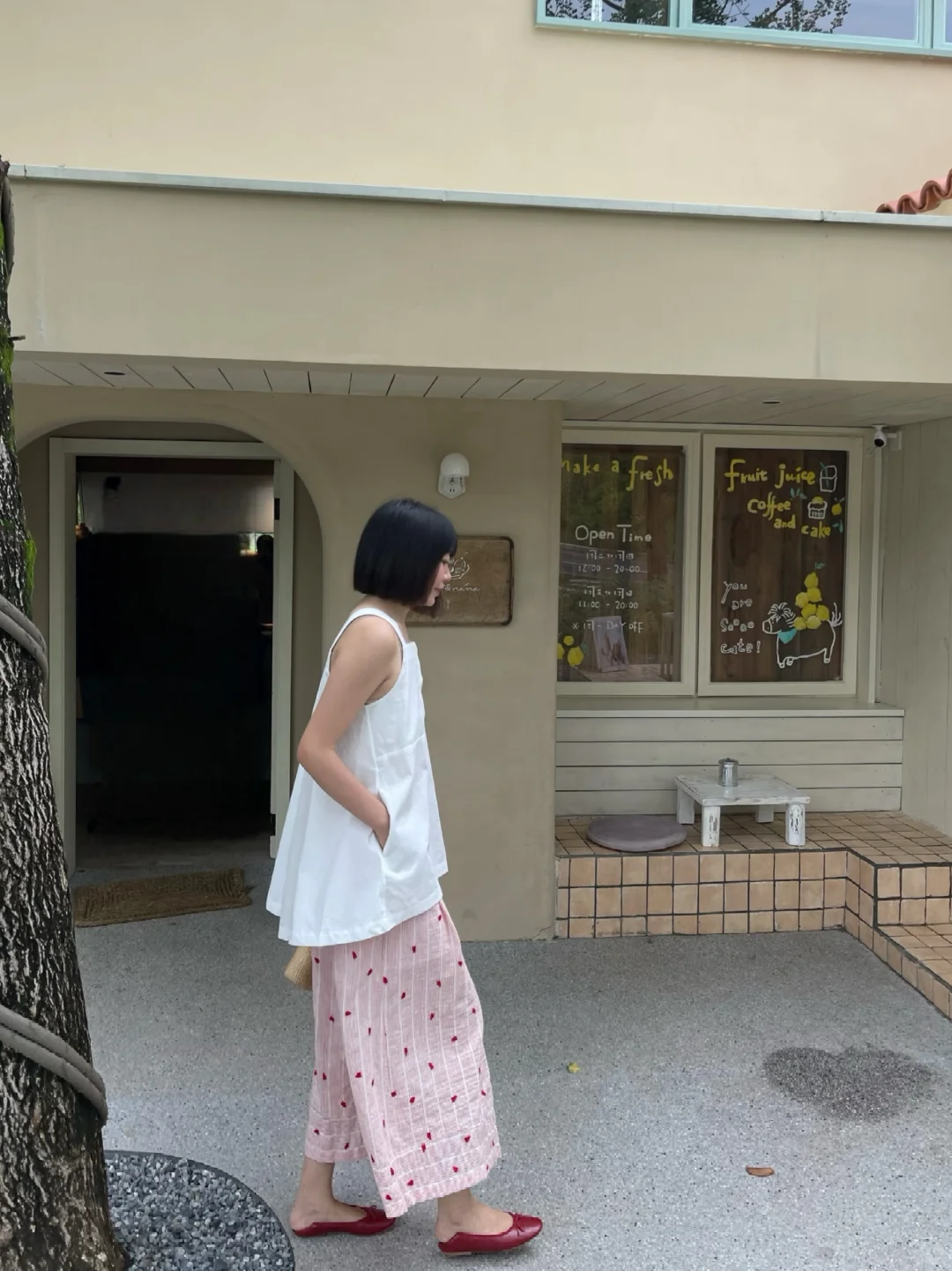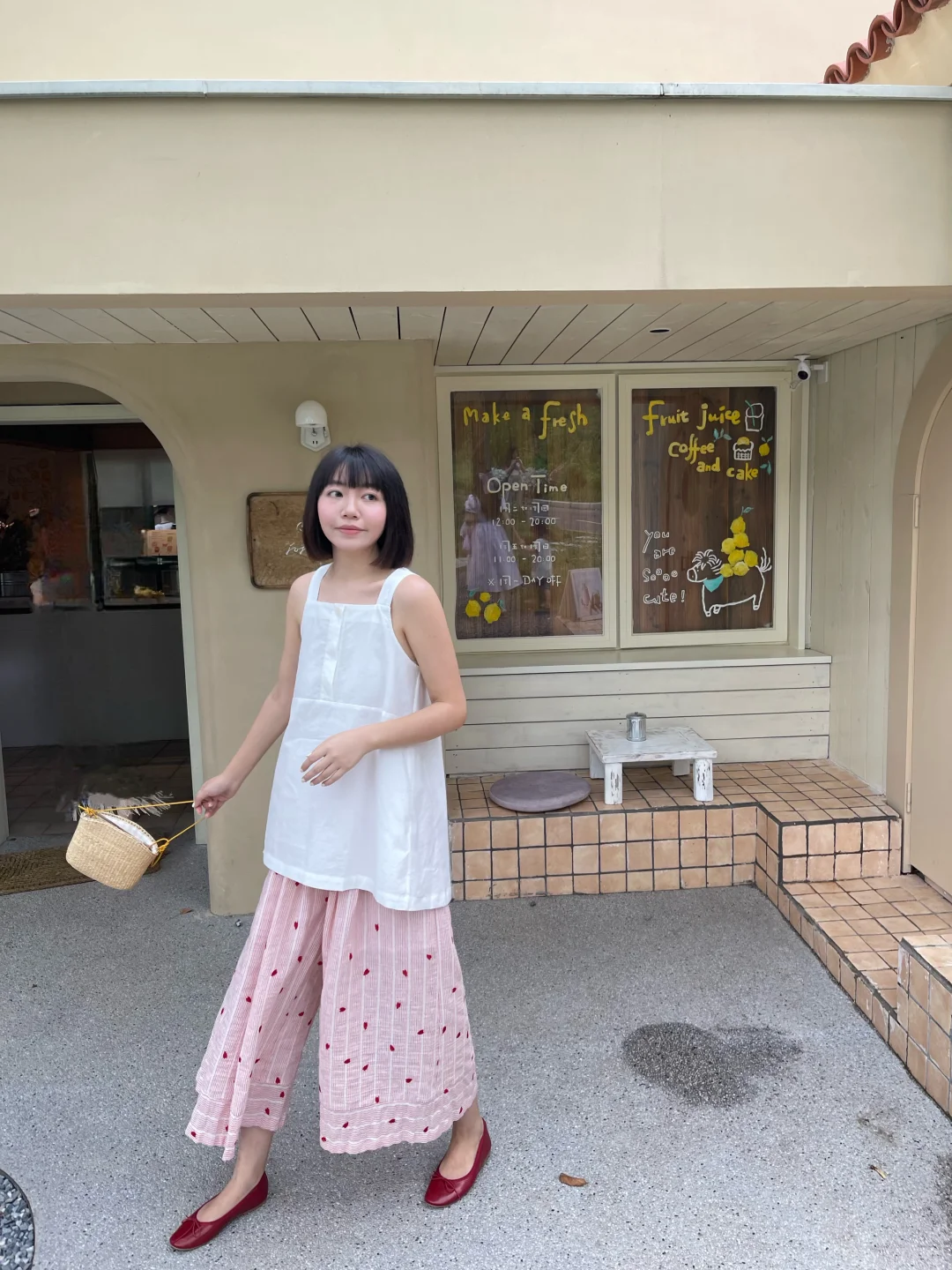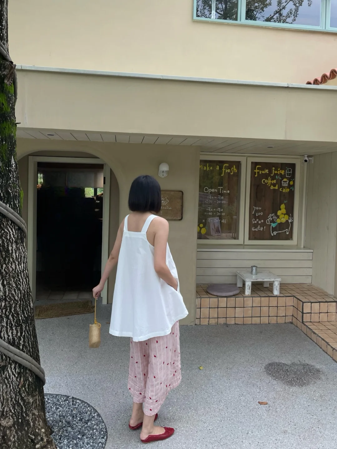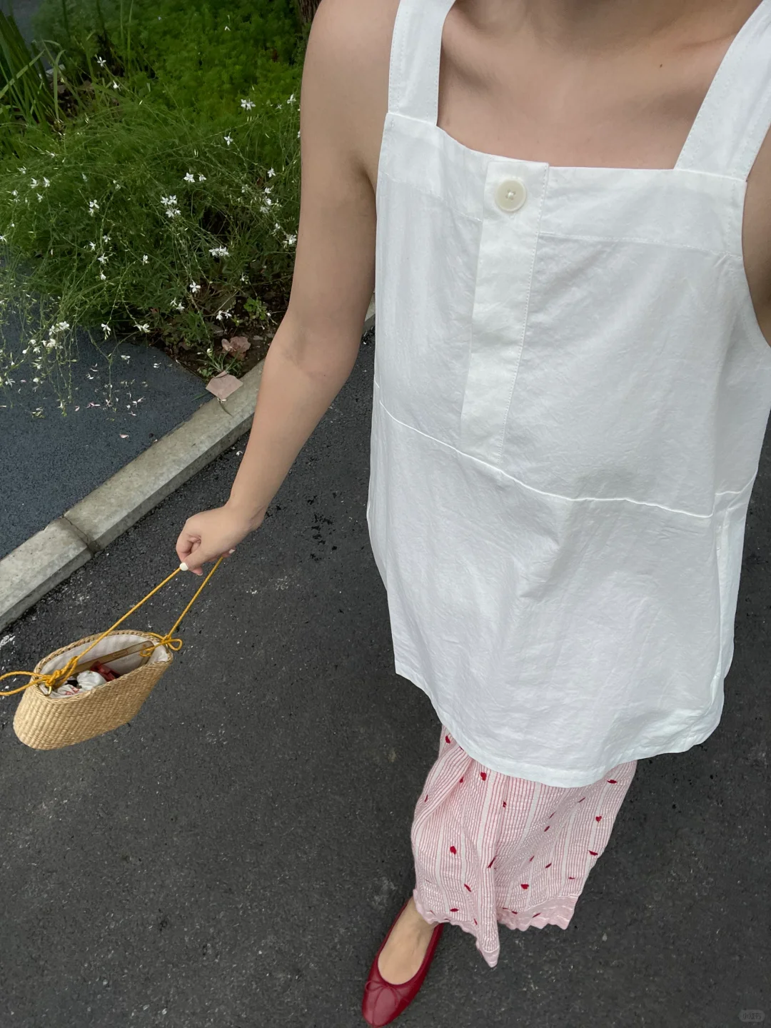 夏天在自然公园里,穿白色背心搭配黄色牛仔裤,妥妥就是甜美少女本女。白色背心清爽又