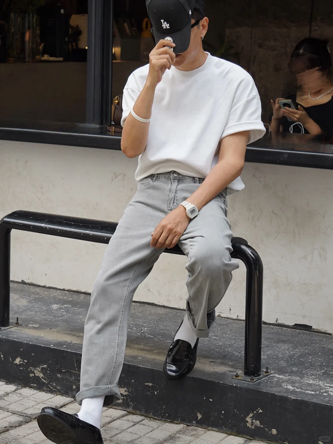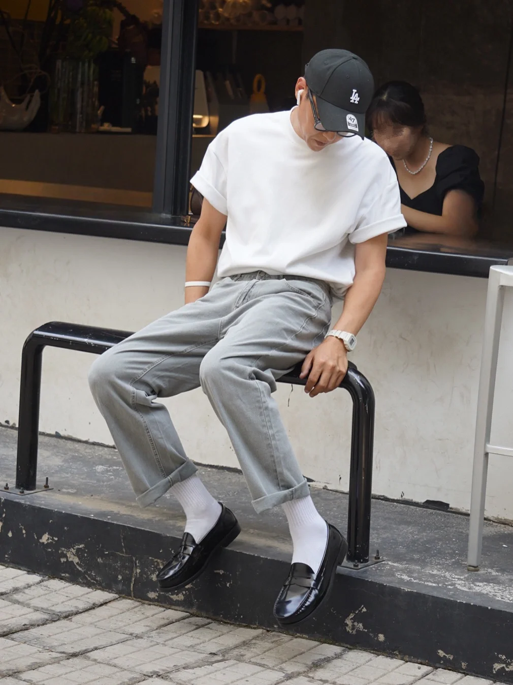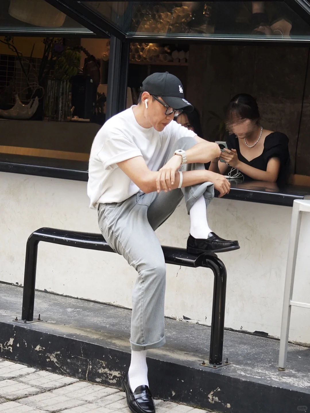 日常|舒适|通勤 👆🏽我的上班通勤穿搭,黑 白 灰 经典 ootd 纯白色短袖t恤+浅灰色夏季薄款牛仔裤+黑色浅口乐福鞋+黑色棒球帽 玩出 高级感穿搭 配色 每日穿搭 松弛感…喝杯冰咖啡吧☕️今天是慵懒的一天…下班快乐!