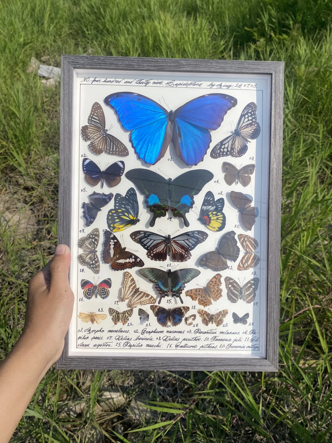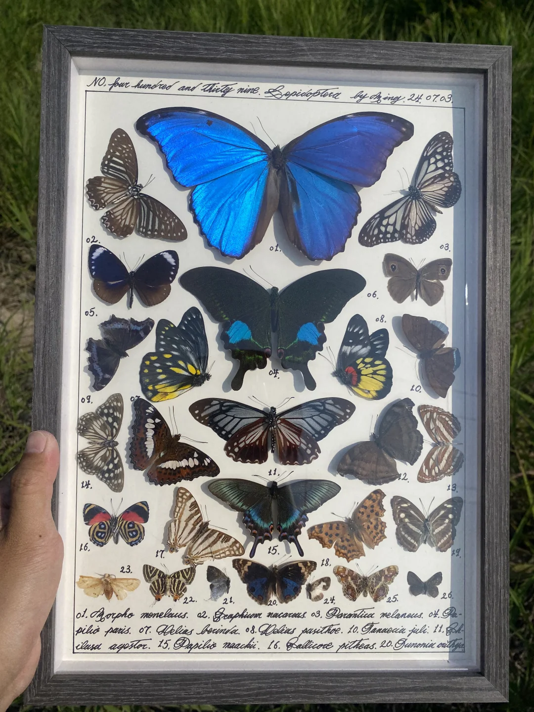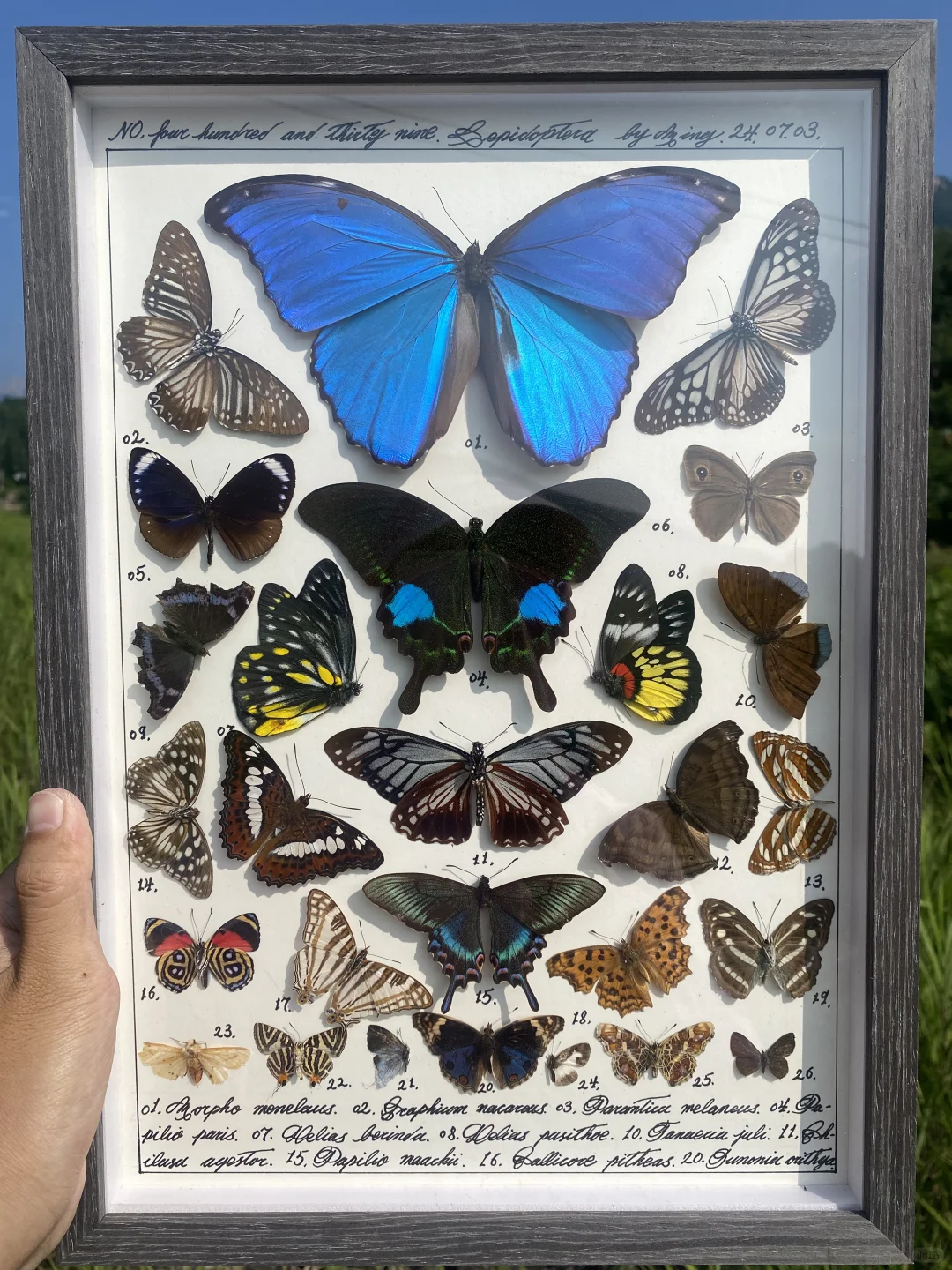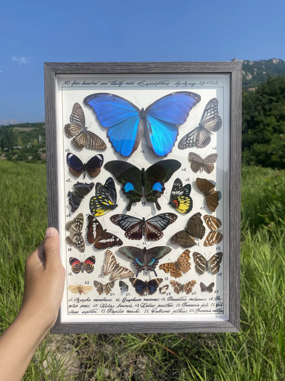 大蓝闪蝶做主蝶的蝴蝶标本图鉴一幅