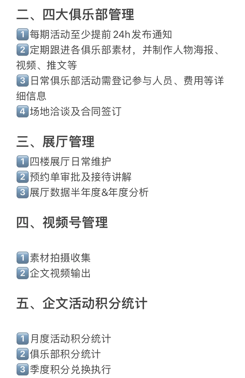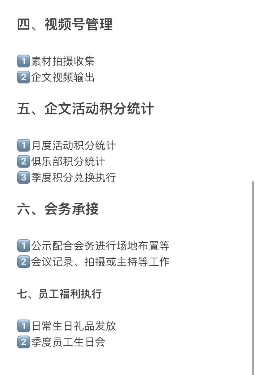 本篇,小知想放一个对自己工作描述的特别详细的小伙伴,她来自一个规模在1000-2000人之间的制造业,在公司是专职的企业文化岗位,或许能够让大家对企业文化岗位的工作职责有一个更加详细的了解