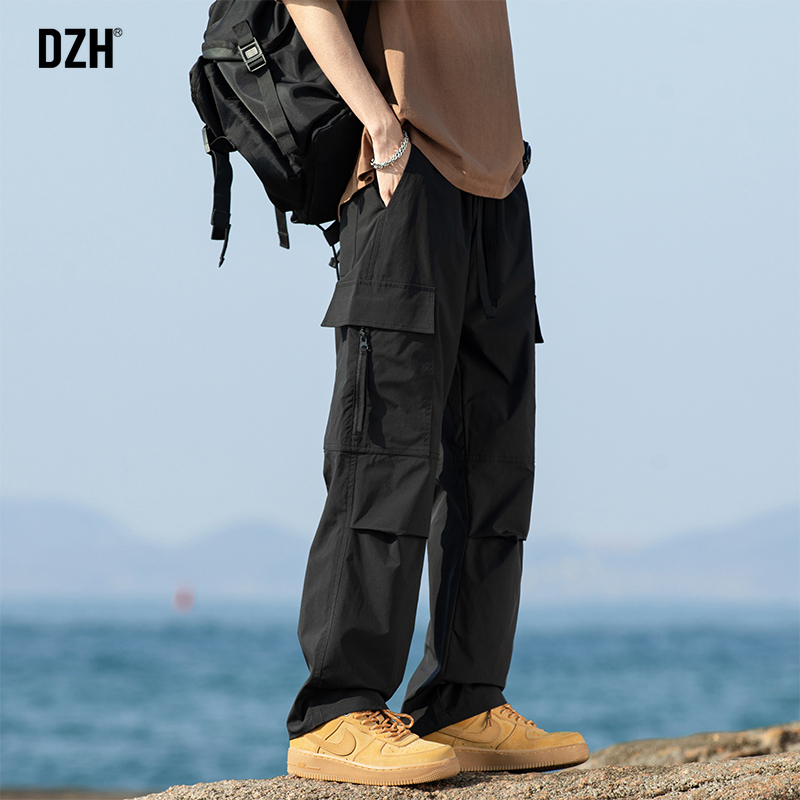 DZH男士日系卡其色直筒工装裤男潮牌痞帅秋季休闲裤2024新款长裤