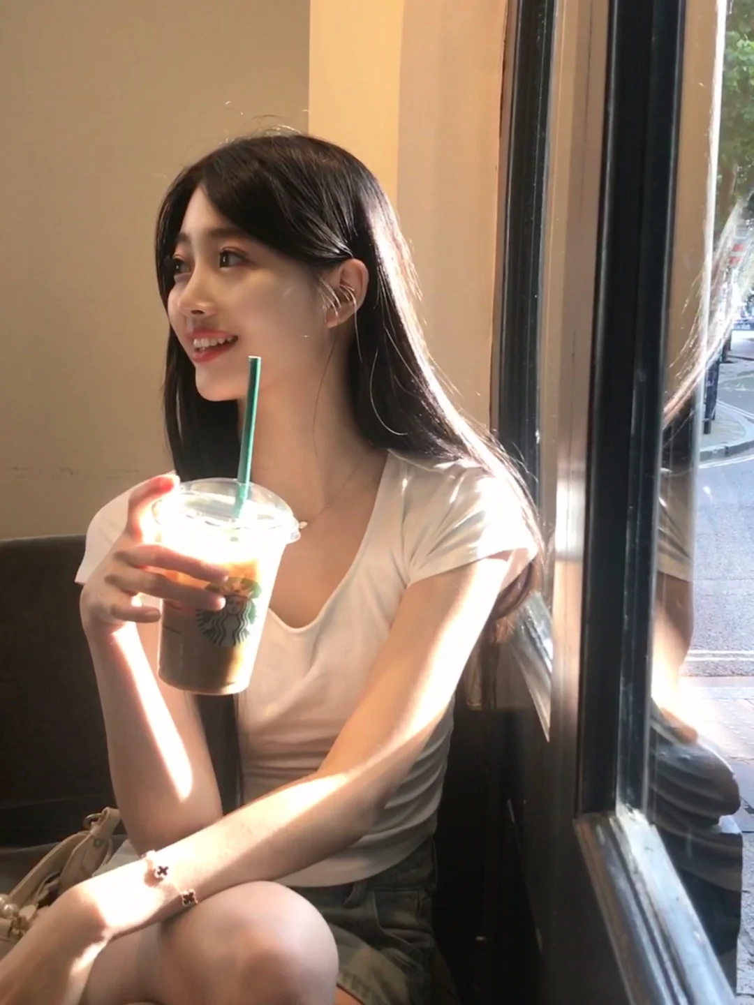 白t➕牛仔裤是夏天最爱的outfit 喝下午茶了~☕阳光好好