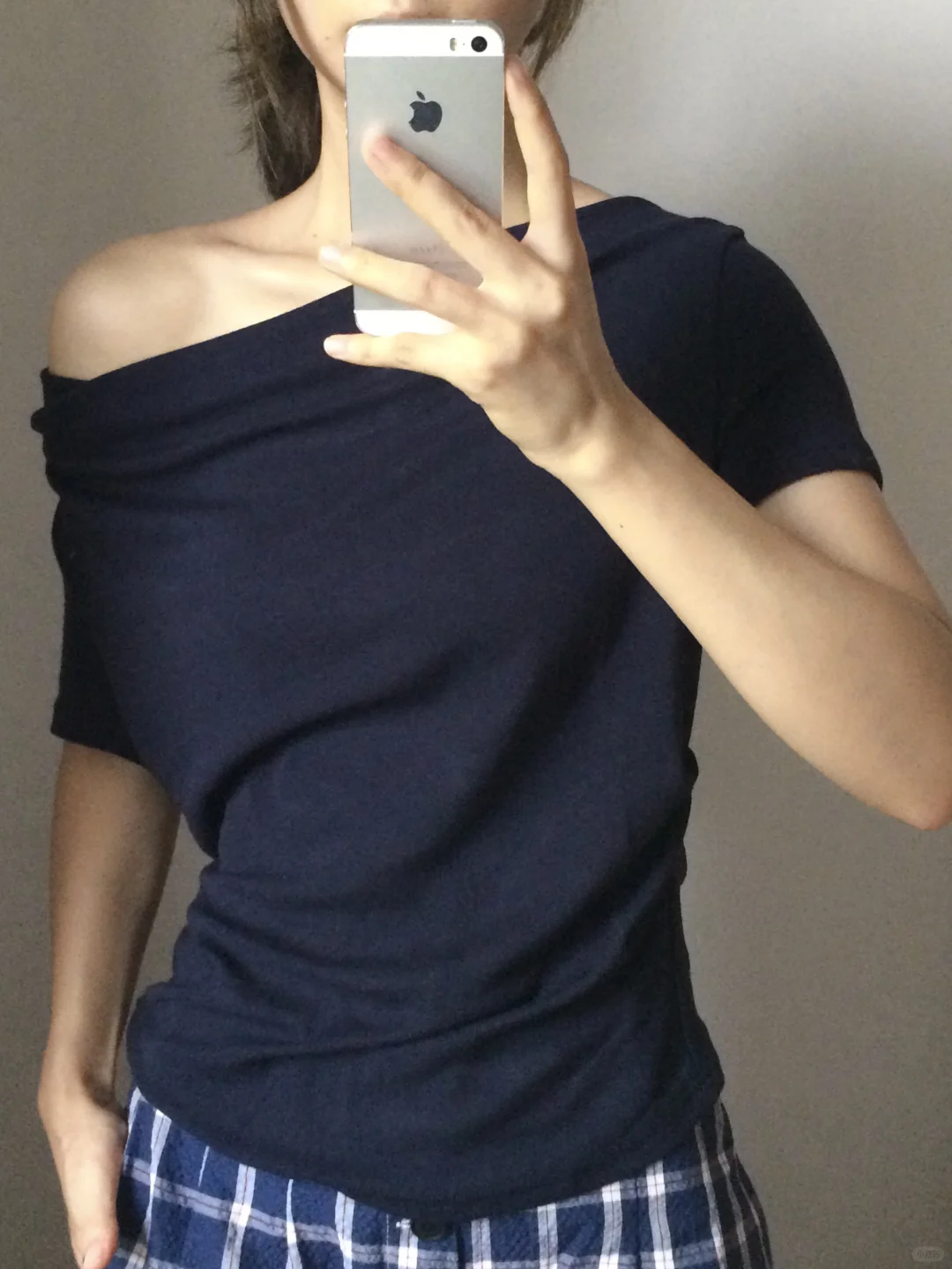 分享一件显瘦的斜肩短袖~
