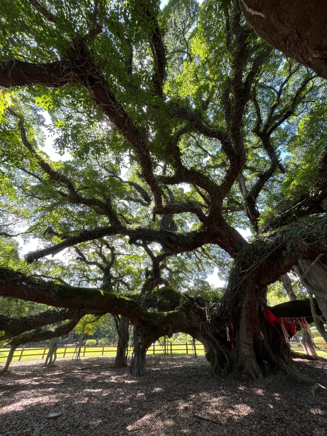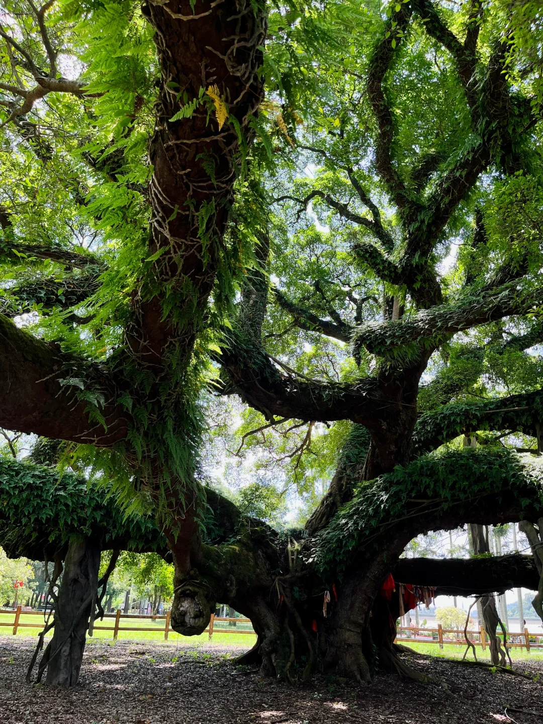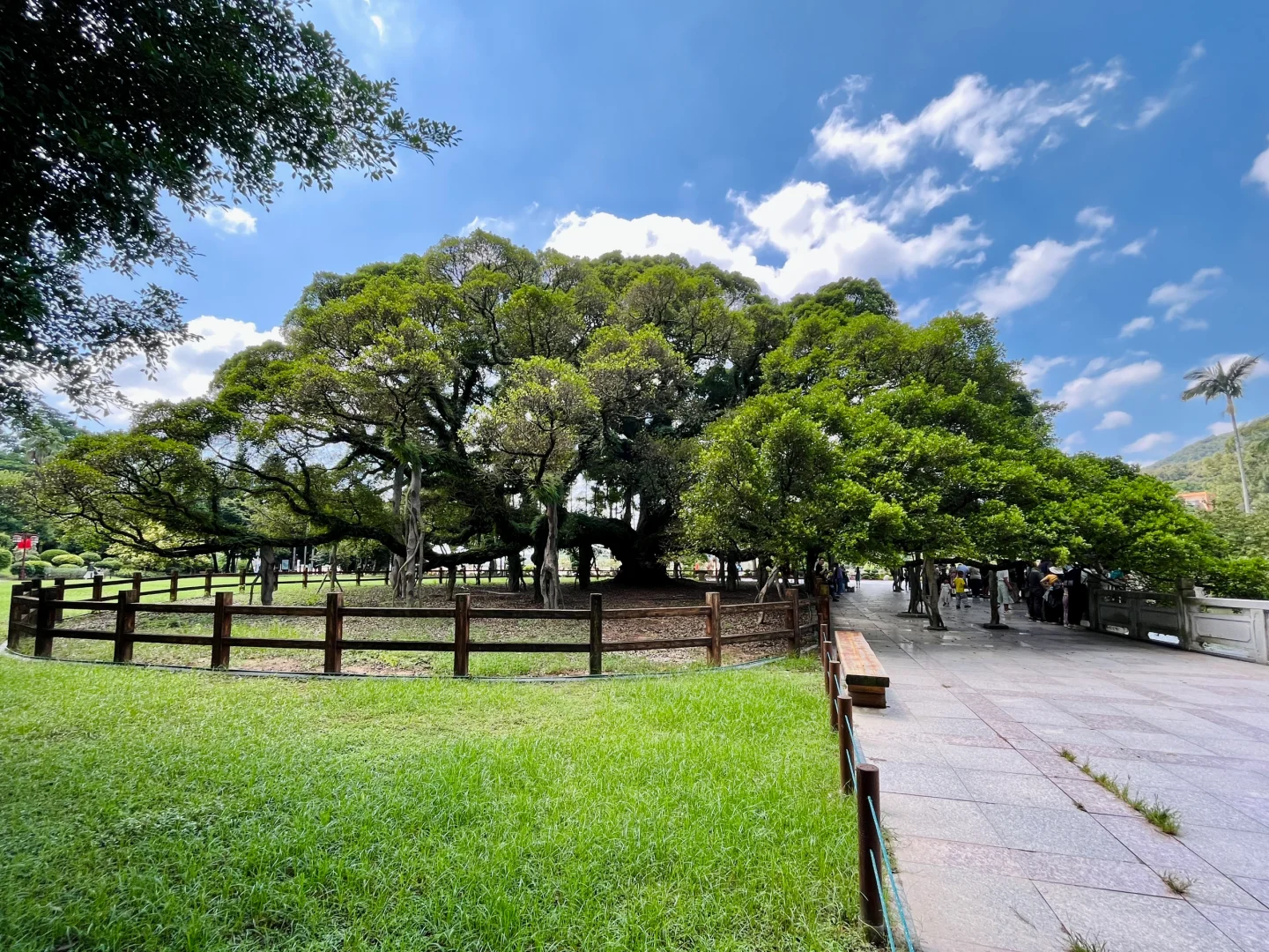 福州森林公园里有一株近千年的古榕树,是福州市民必打卡点之一。其树冠盖地十多亩,为福州十大古榕之首,被市民誉为“榕树王”,是榕城福州的象征。