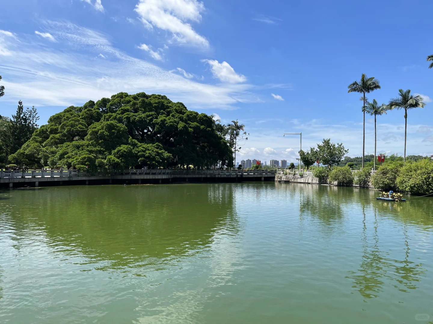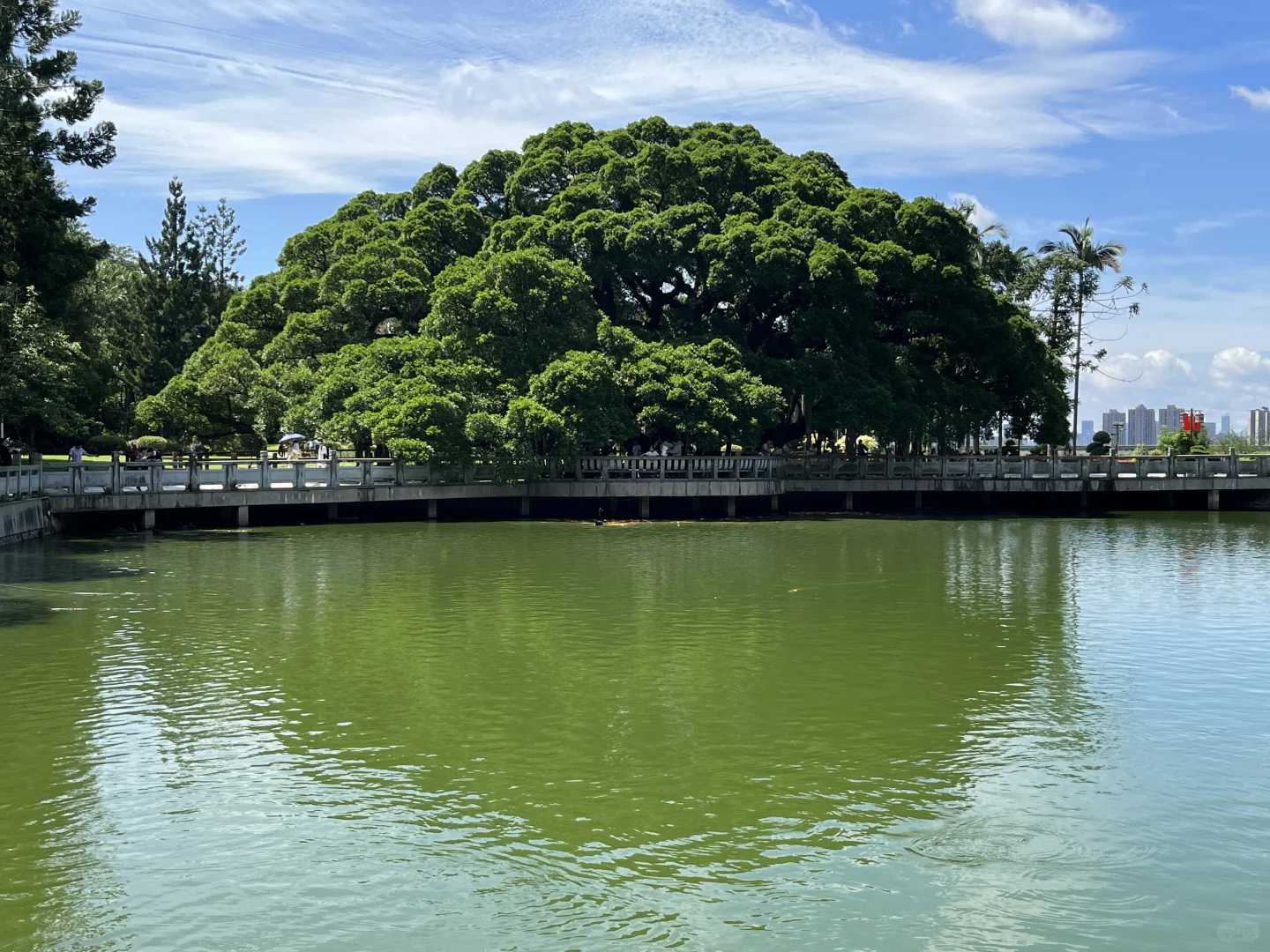 因其位于湖边,烈日下,波光倒影,映着古榕枝繁叶茂,苍劲挺拔的英姿,煞是壮观,现已成为森林公园内的一大著名景点。