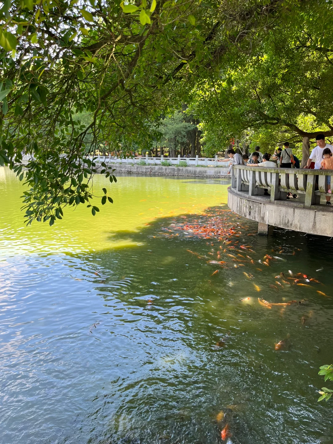 同时,榕树下的观鱼池有百千锦鲤,吸引游人无数。