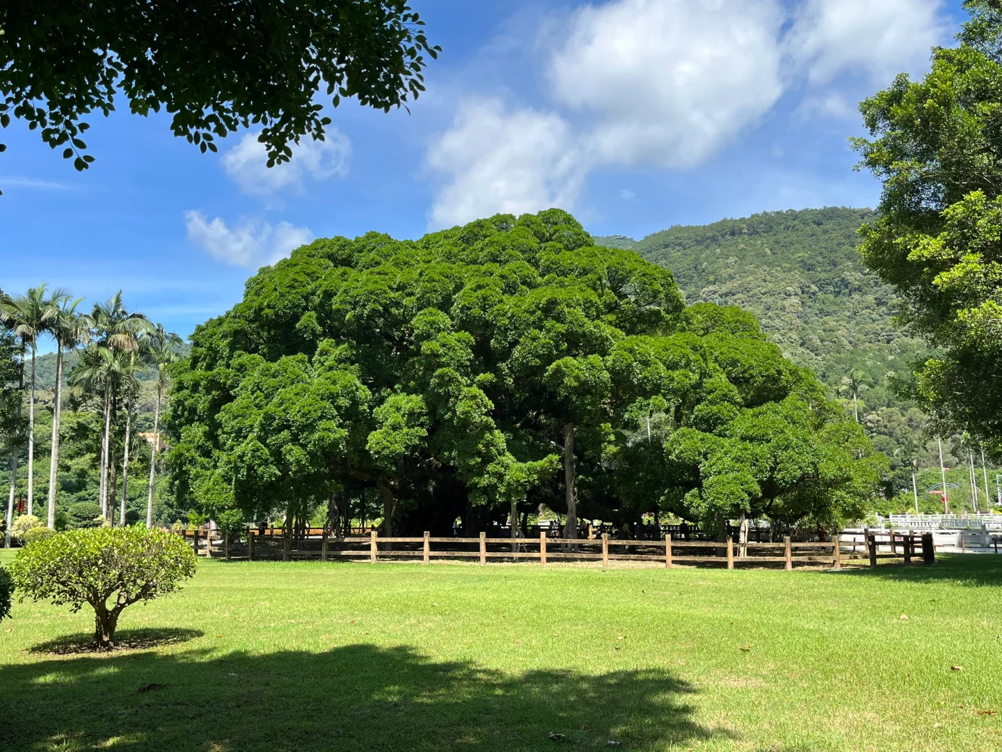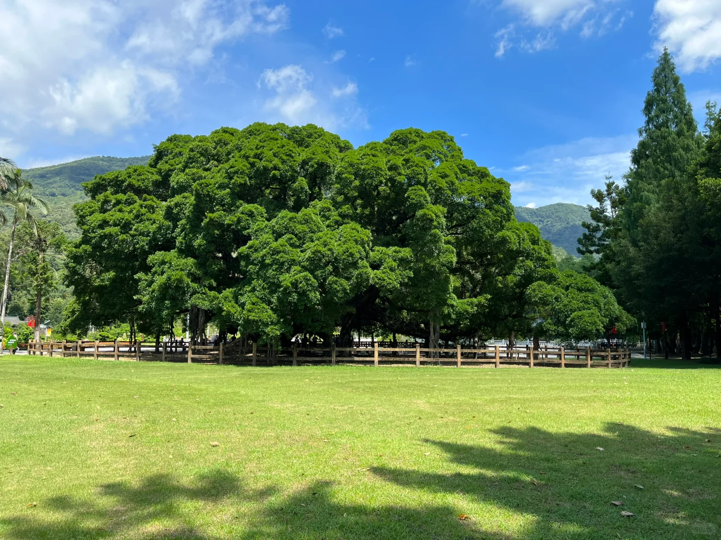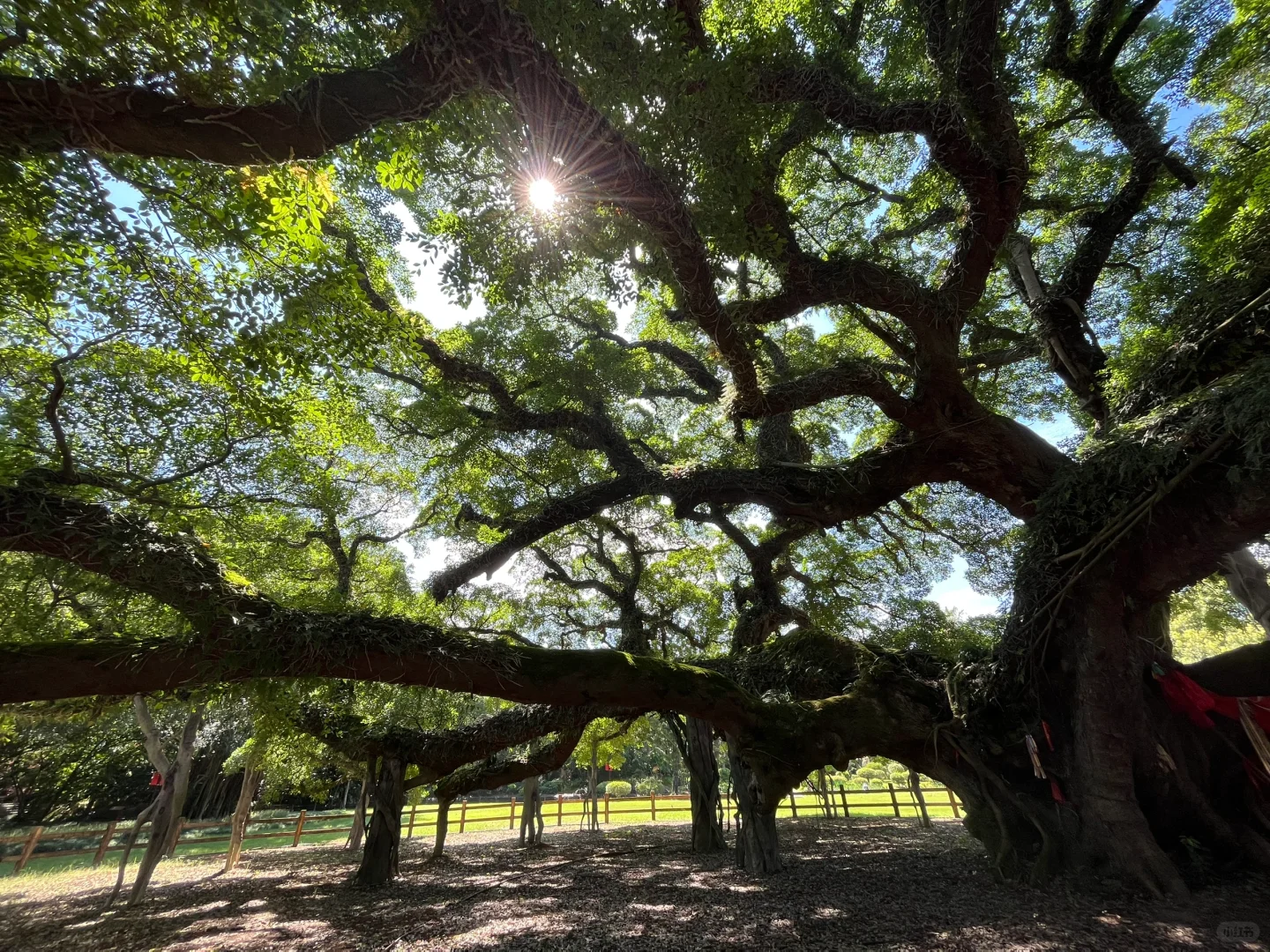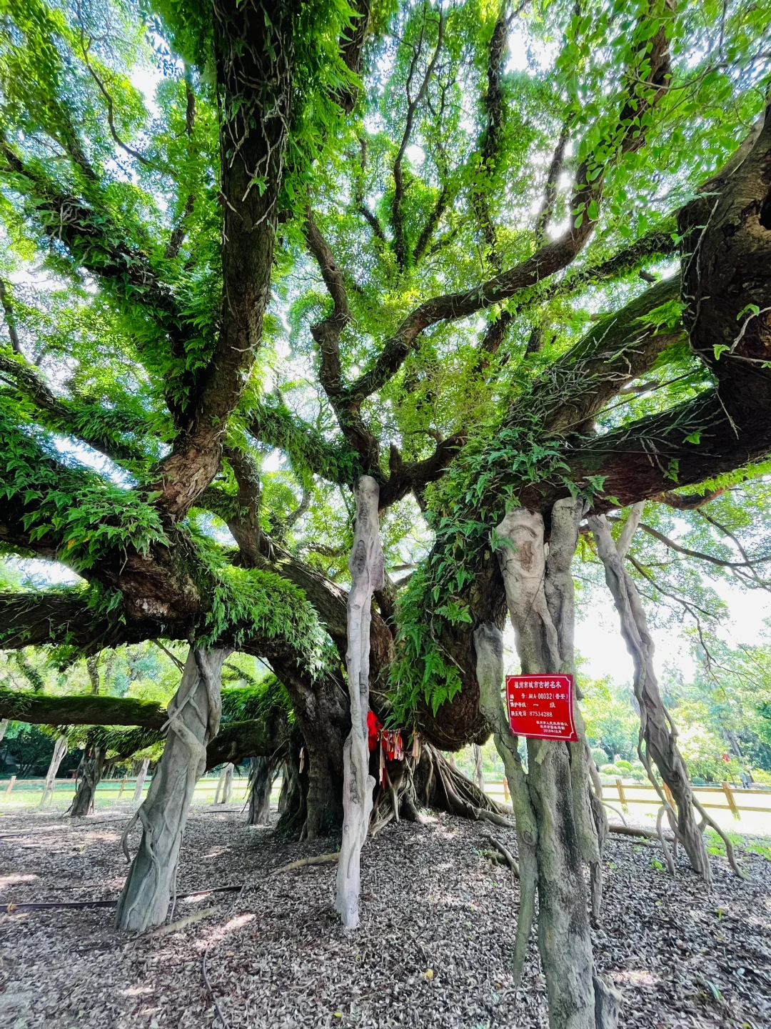 该树围9m多,高50多m,冠幅1330多㎡,可谓“榕荫遮半天”,也叫“鸟的天堂”。