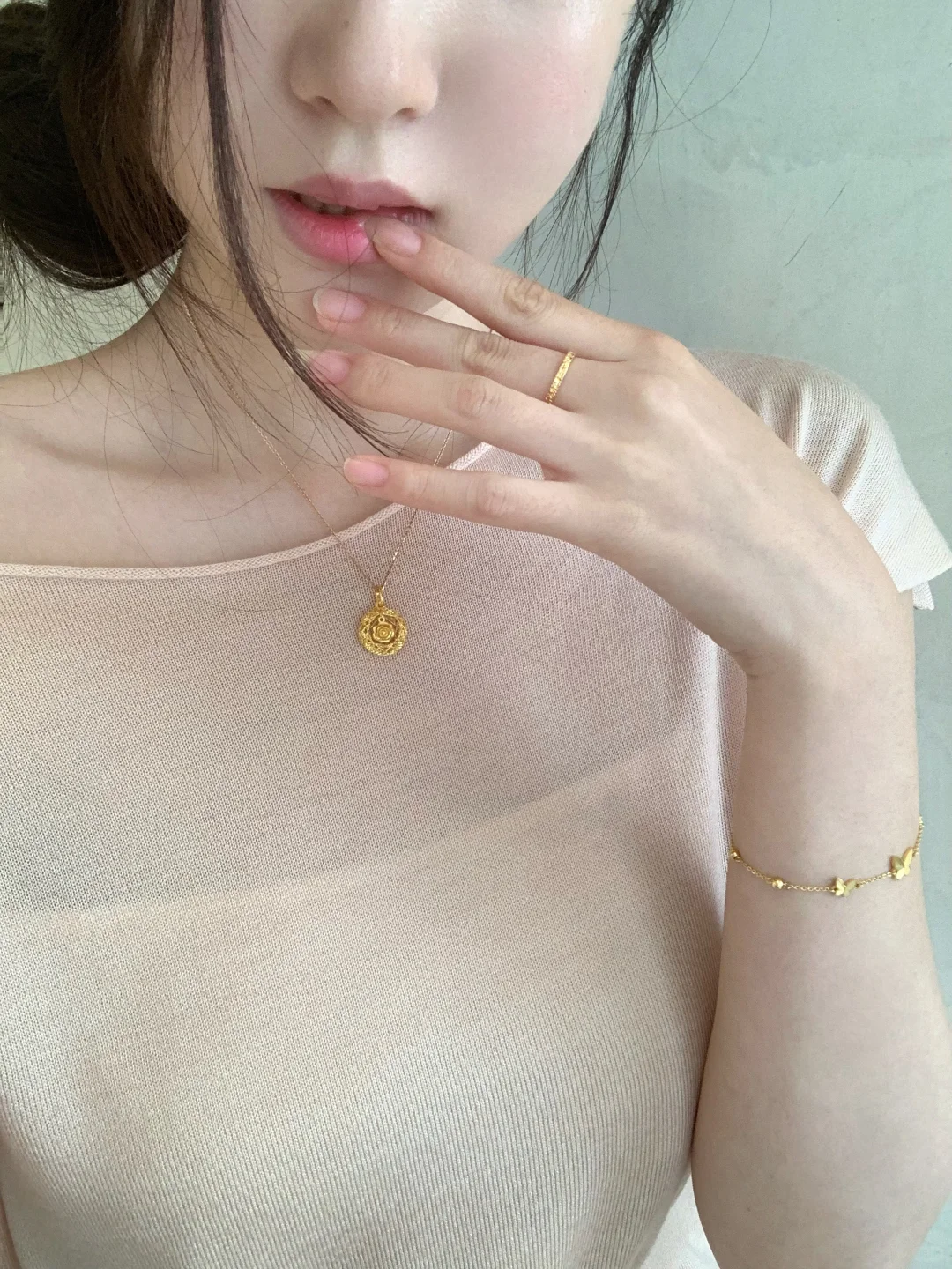 黄金首饰真的是点睛之笔啊,素颜穿搭救星,亮闪闪提升整个人的精致感~✨周大福这设计,美了美了