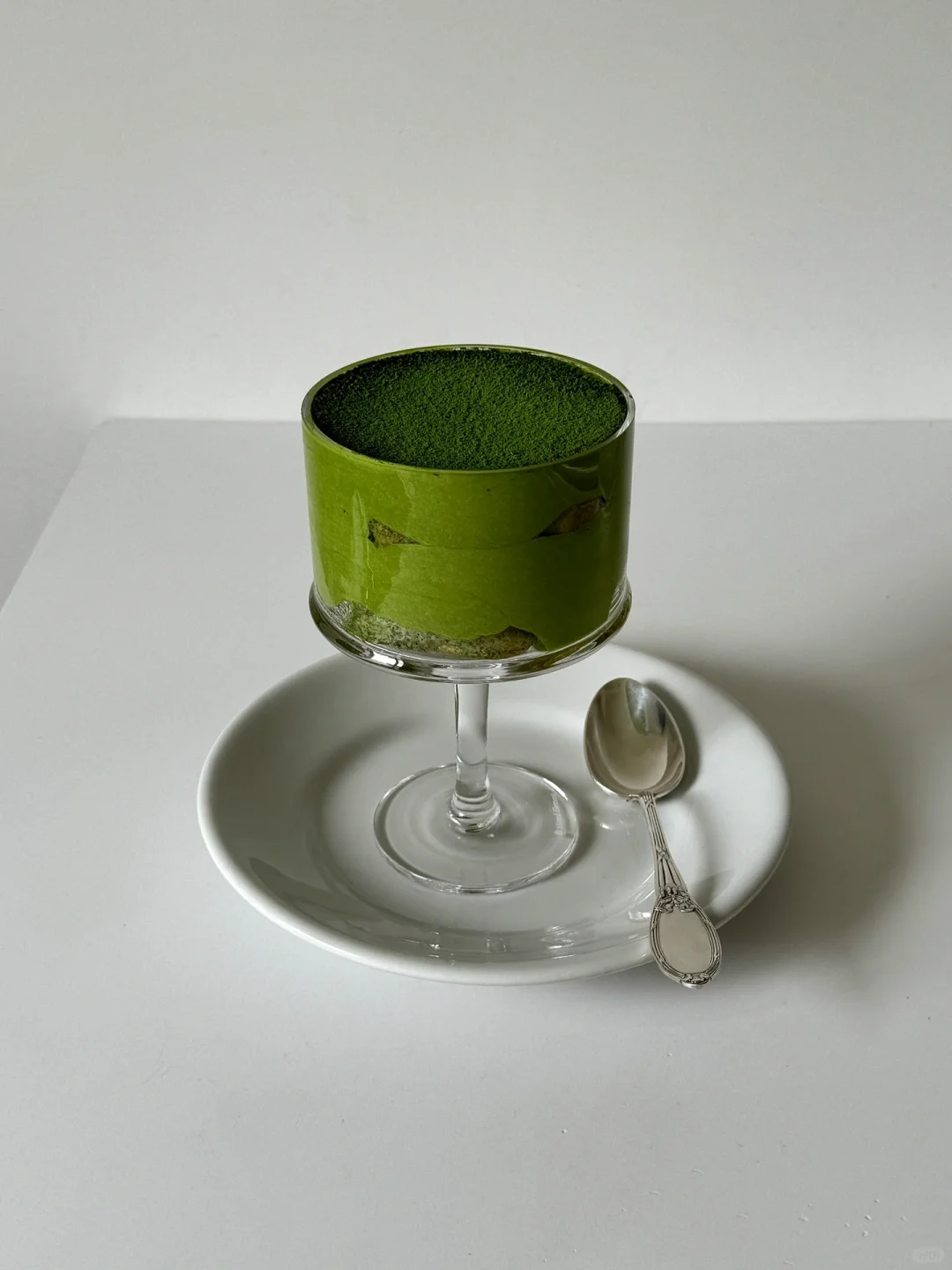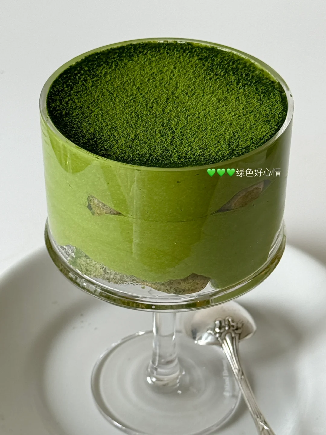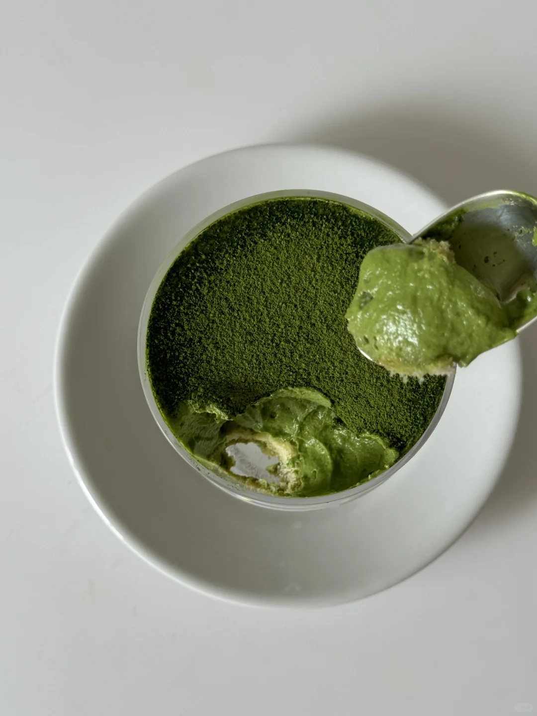 英式奶酱+抹茶甘纳许+马斯卡彭+打发蛋清+手指饼干浸泡抹茶百利甜酒