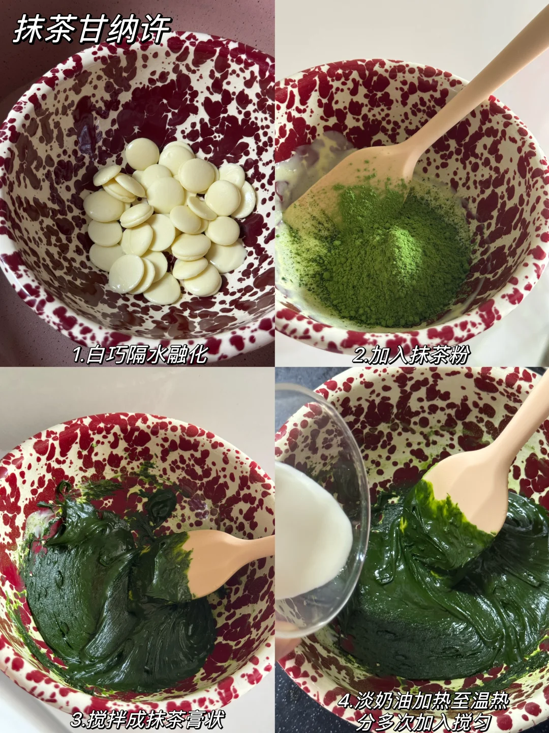 ·抹茶甘纳许:白巧40g+抹茶粉15g+淡奶油30g