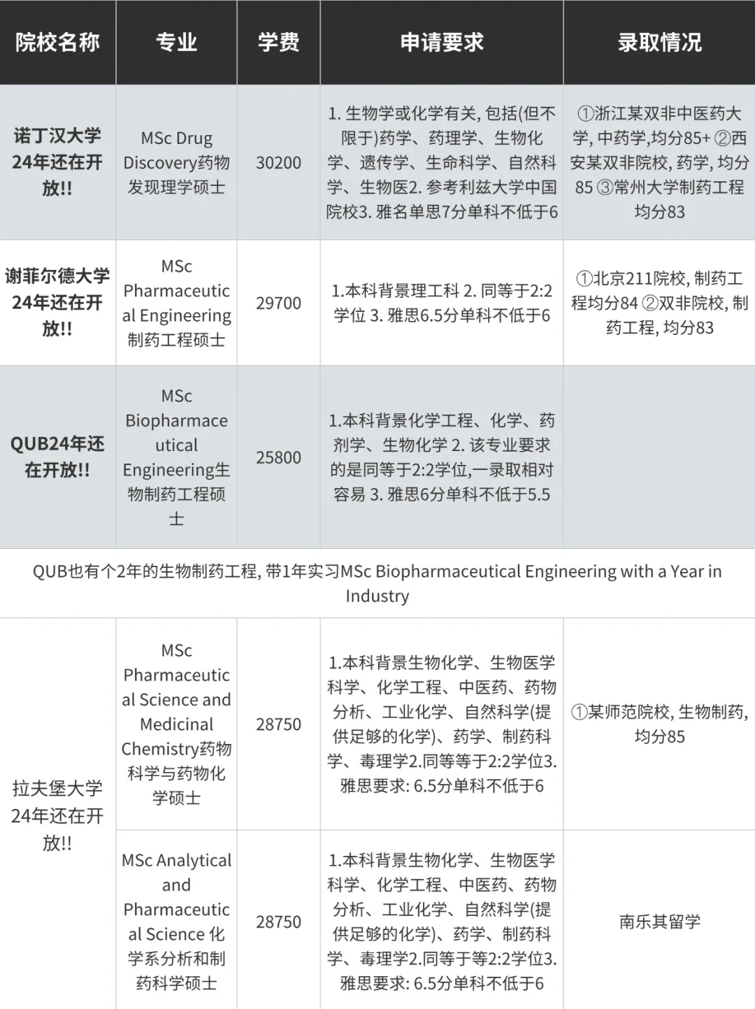 ✅ 制药分析、技术和生物制药硕士,这学科世界排名第 20 呢。要求本科背景是化学或生物化学相关学科,985/211/双一流均分 80 分,双非建议 85 分,雅思 6.5 分,单科不低于 6 分💯。