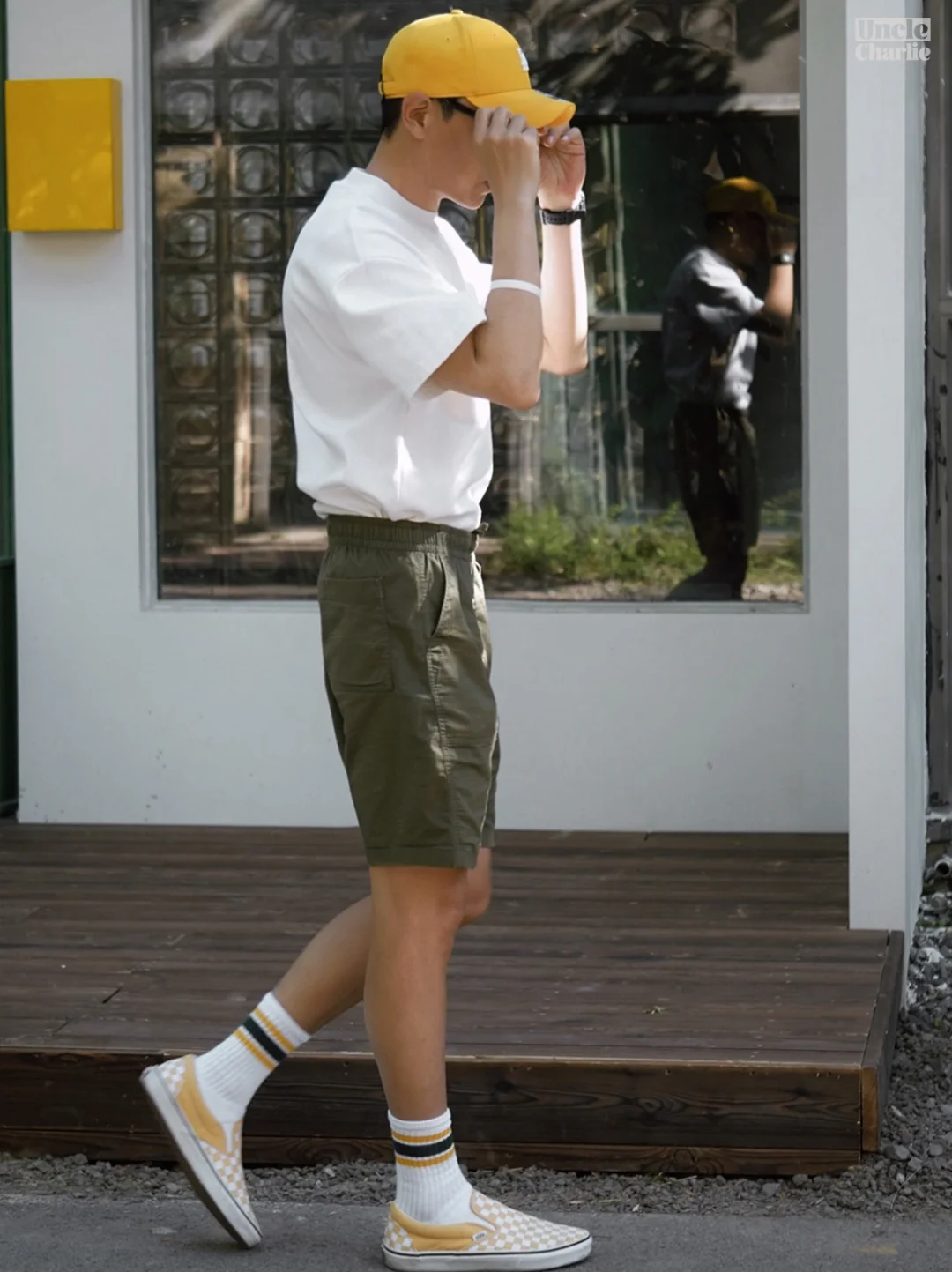 夏日☀️的空闲时间就要打翻“调色盘” 忘记年龄,讨好自己✌🏽 柠檬黄&橄榄绿,与周围环境融为一体…随便走走。 鞋👟:vans slip-on 帽子🧢:47 brand