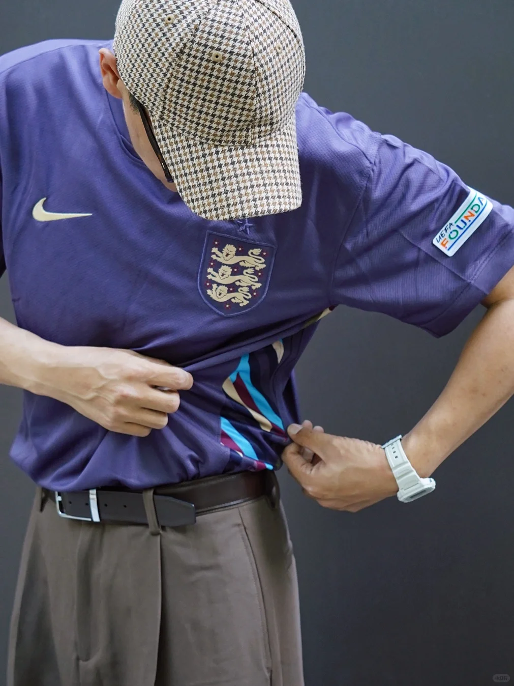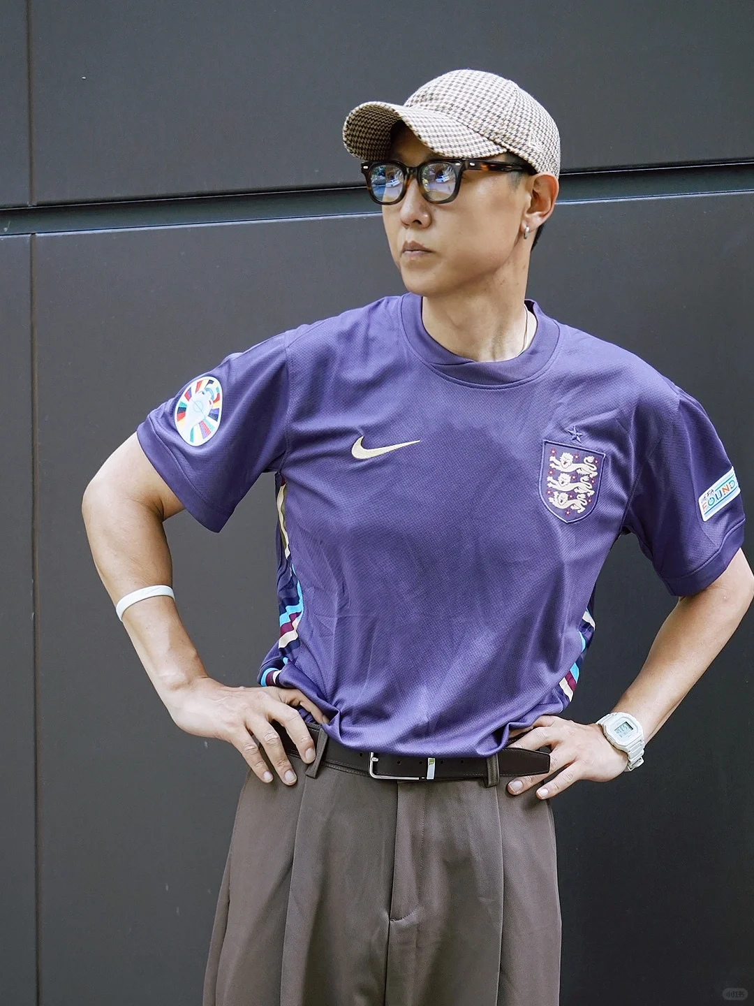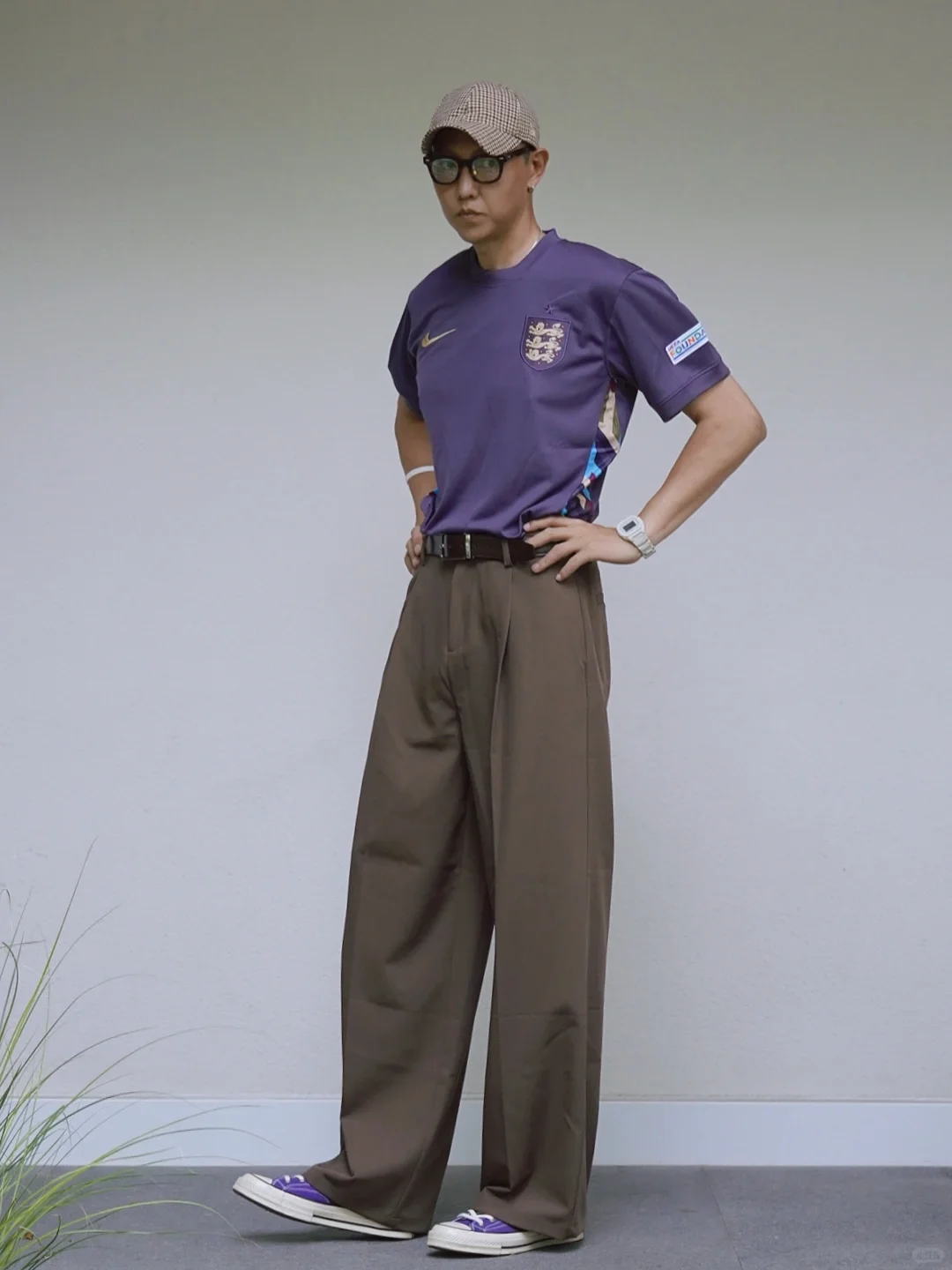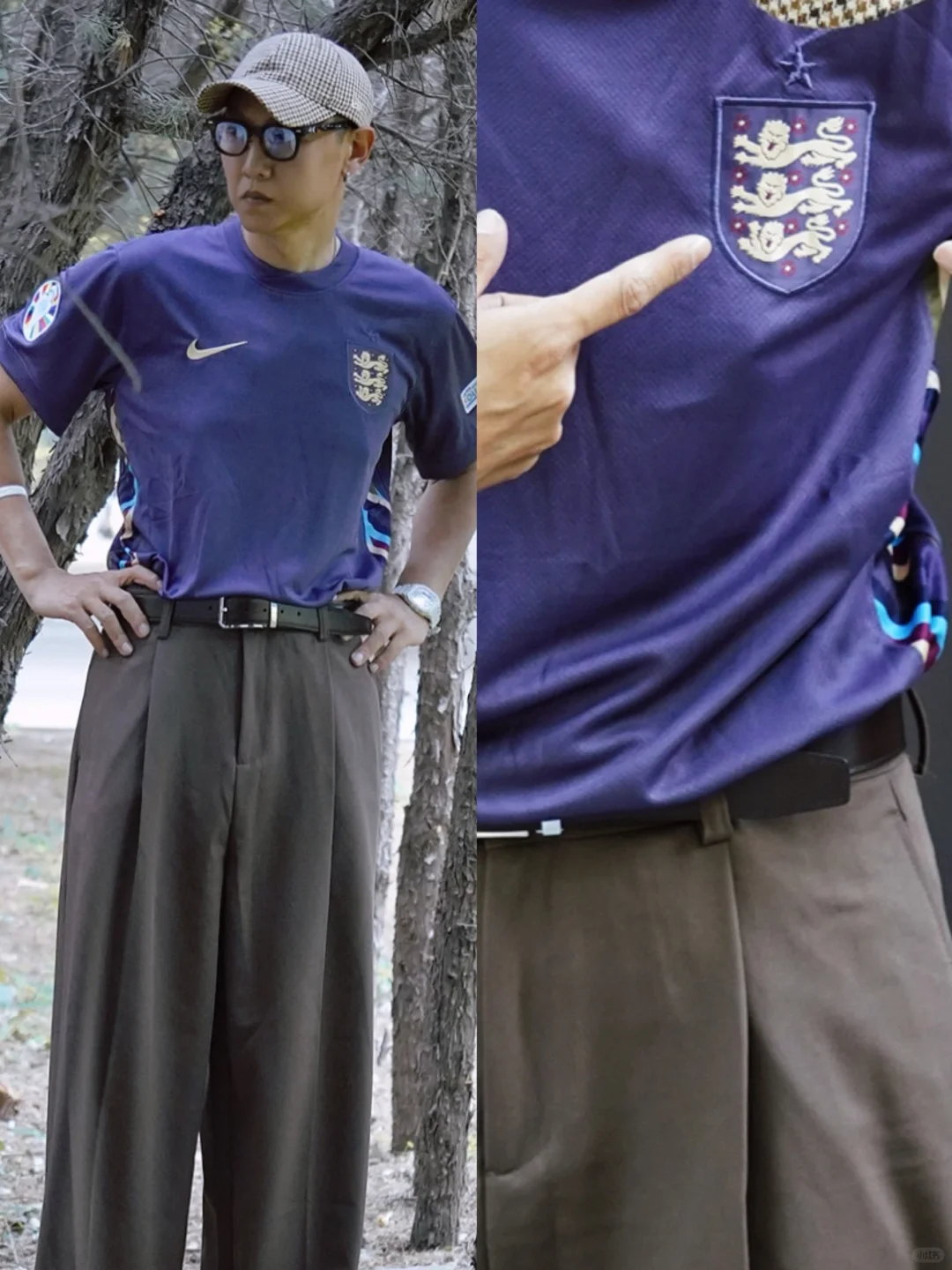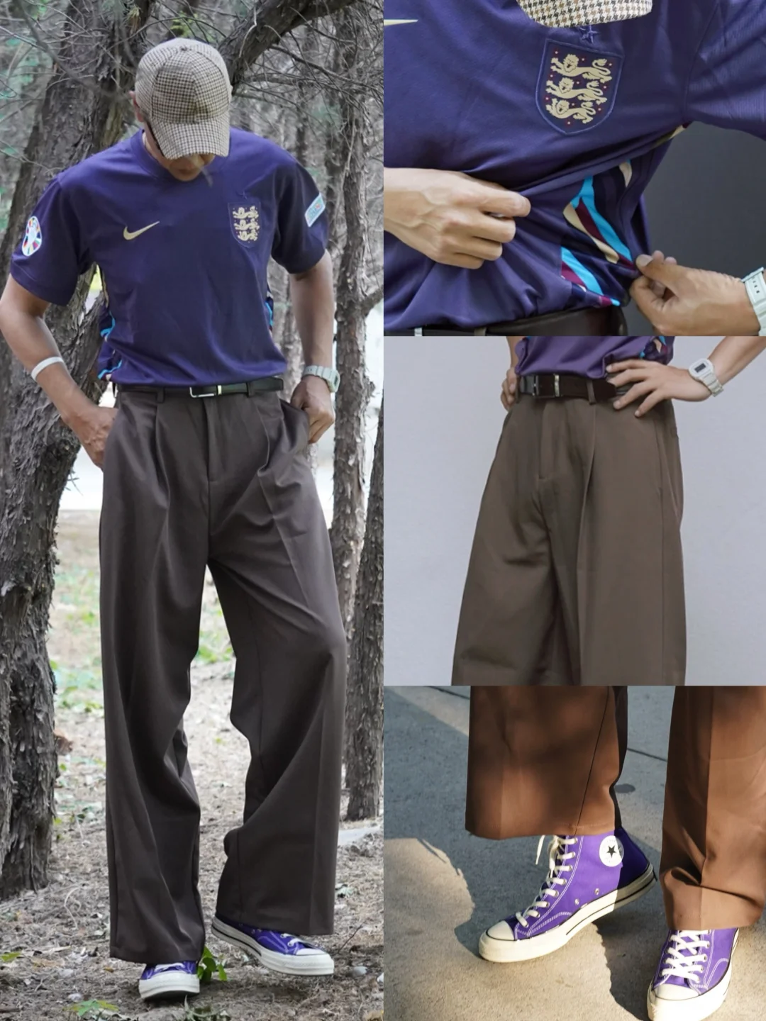 👆🏽今日欧洲杯穿搭 球衣潮流攻略 一起去看球吧! 球迷 男士穿搭 格子棒球帽+ 英格兰队客场球衣+宽松 西装裤+紫色帆布鞋… 也可以 上班通勤穿搭 展示你的主队! 那么 你们的主队是谁?