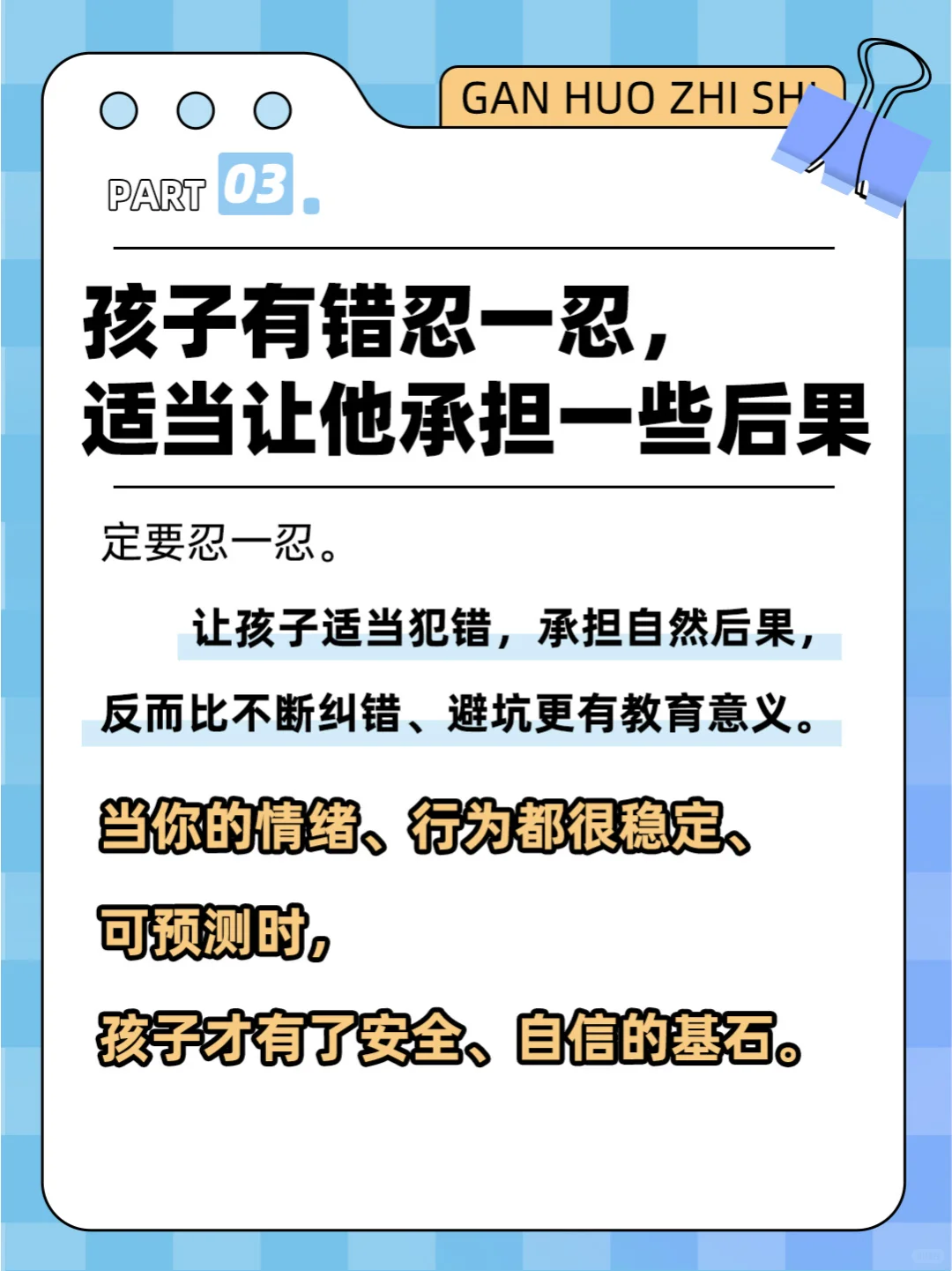 1️⃣别让孩子童年“无助”🚸 2️⃣别让孩子长大“无能”🚫 3️⃣孩子有错忍一忍🙊,适当让他承担一些后果⚖️ 4️⃣遇事停一停⏸️,多反思自我🔍