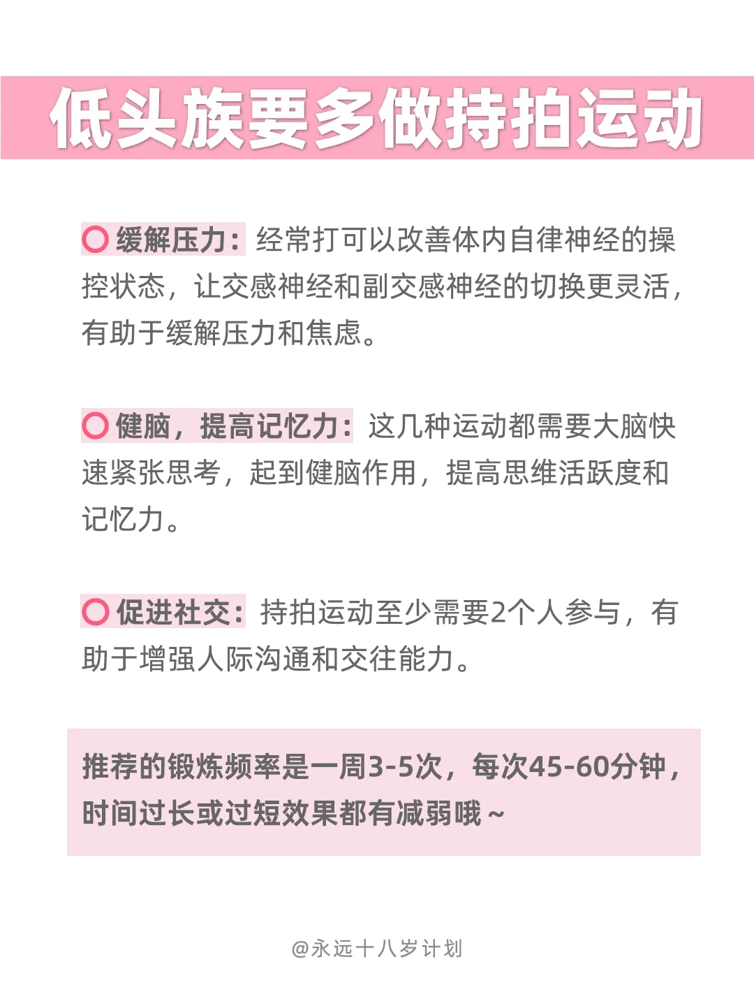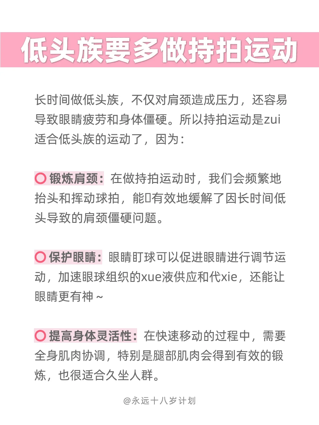 永远十八岁低头族要多做持拍运动