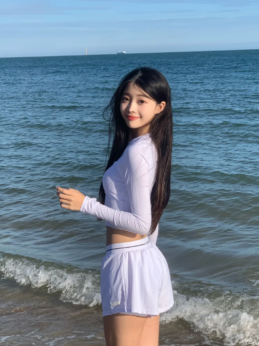 大海那么美,不晒黑怎么对得起它的热情呼唤!长袖泳衣,时尚防晒两不误,爱海无罪,晒黑有理