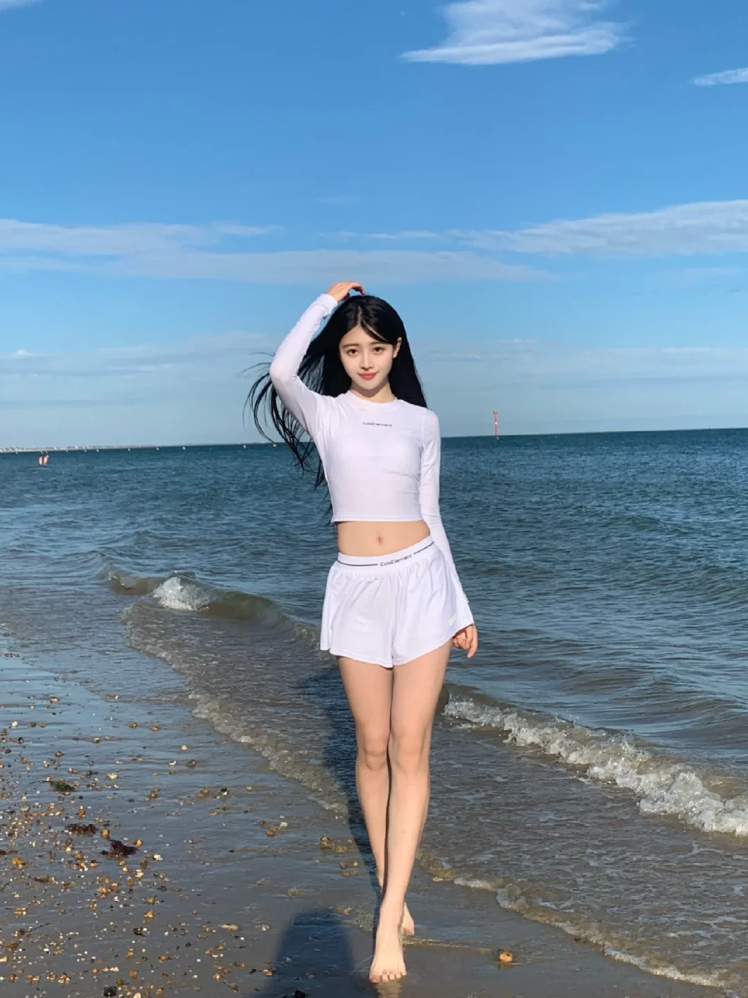 大海是玩水的天堂,长袖泳衣虽然防晒,但不就是少了点与阳光亲密接触的快乐吗?哎呀,这热爱得有点“避暑”过头了吧