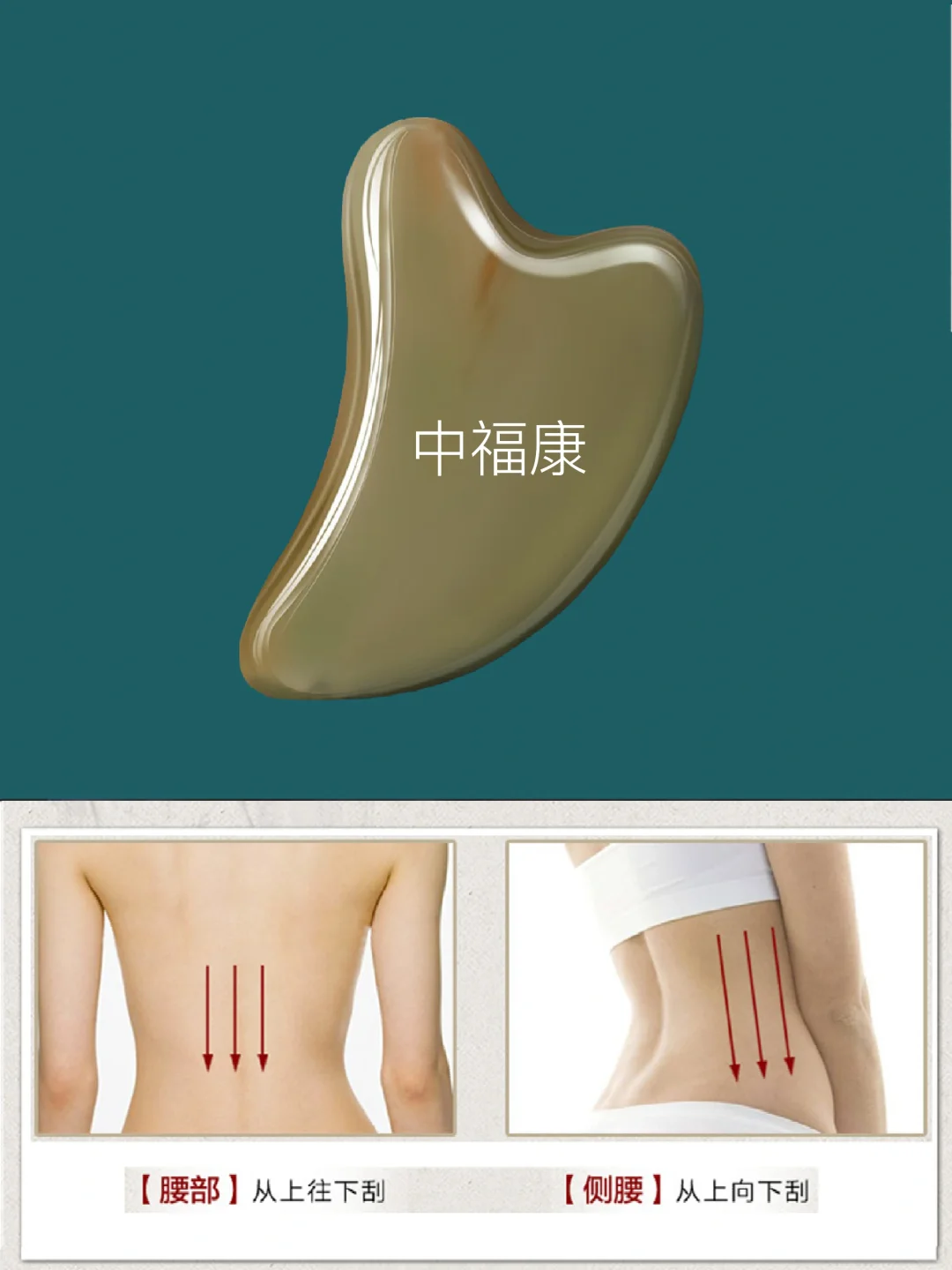 2.重刮法:力度大,速度快,以患者能承受为度,适用于年轻力壮、体质较强者,或背部脊柱两侧、下肢及骨关节软组织较丰满处,以及实证、热证、痛证者。
