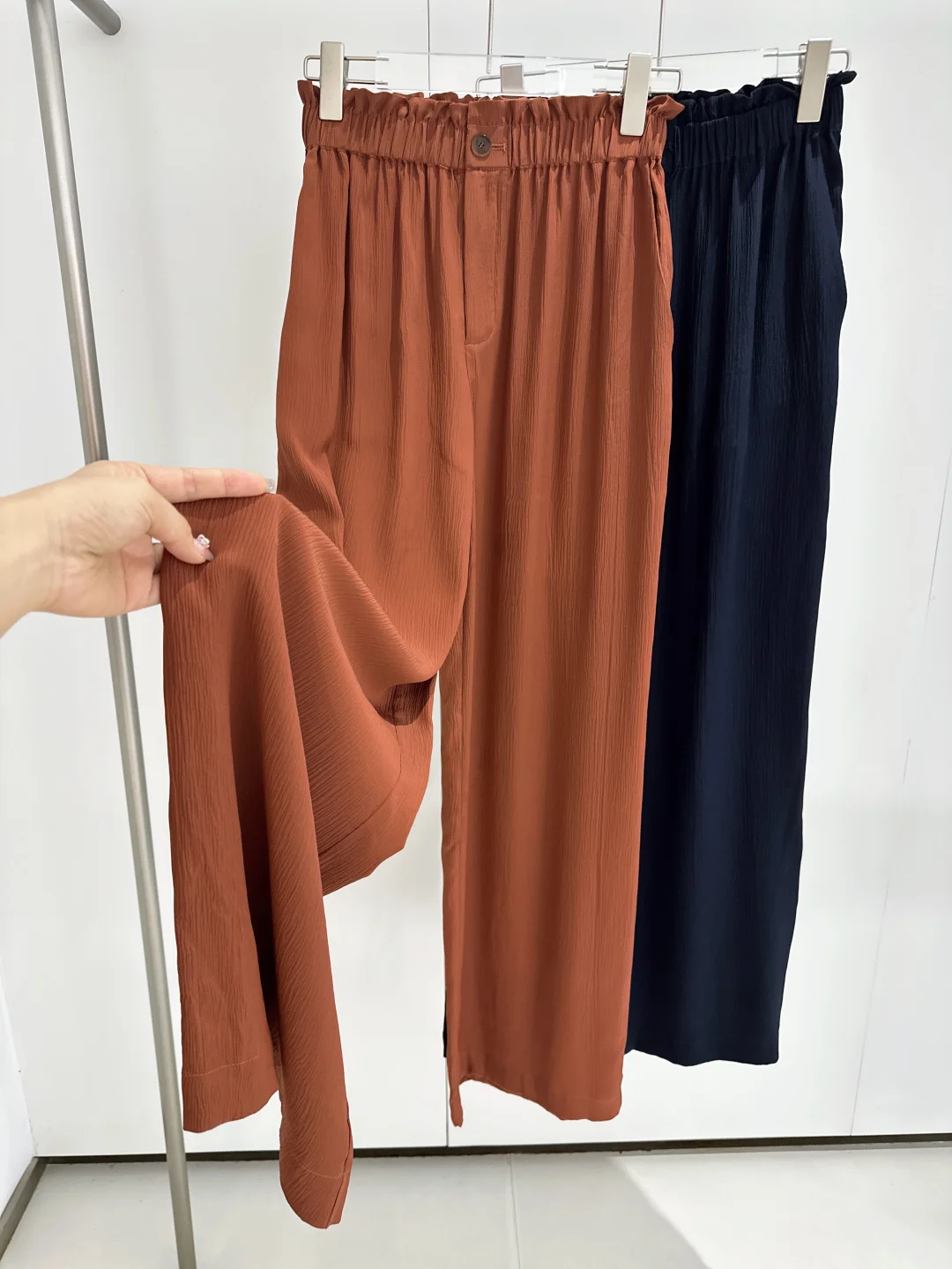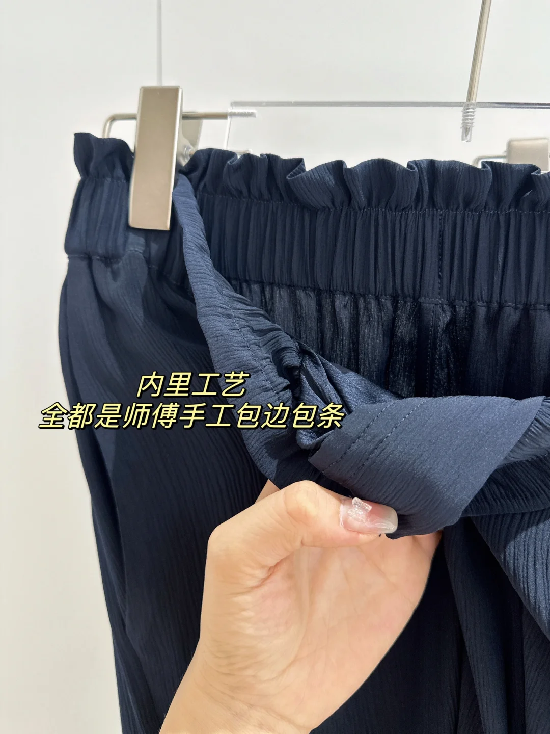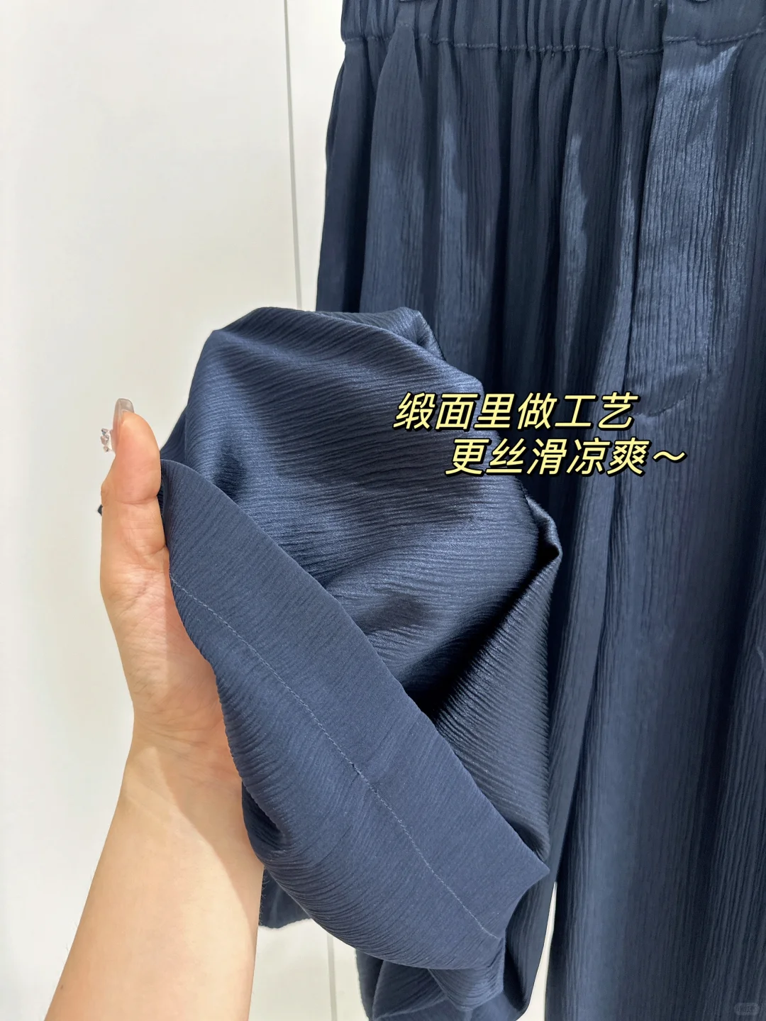[向右R]面料:19姆米100%桑蚕丝的顺纡缎,原本面料是平滑的,但做了褶皱工艺(实际姆米数会高一些),同时也非常费面料,这一件=普通阔腿裤一件半。