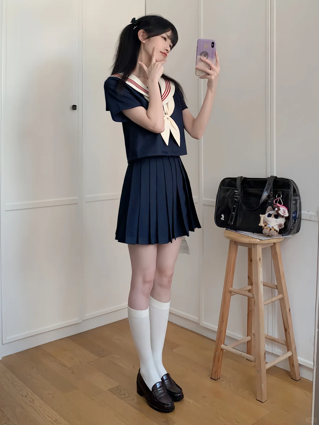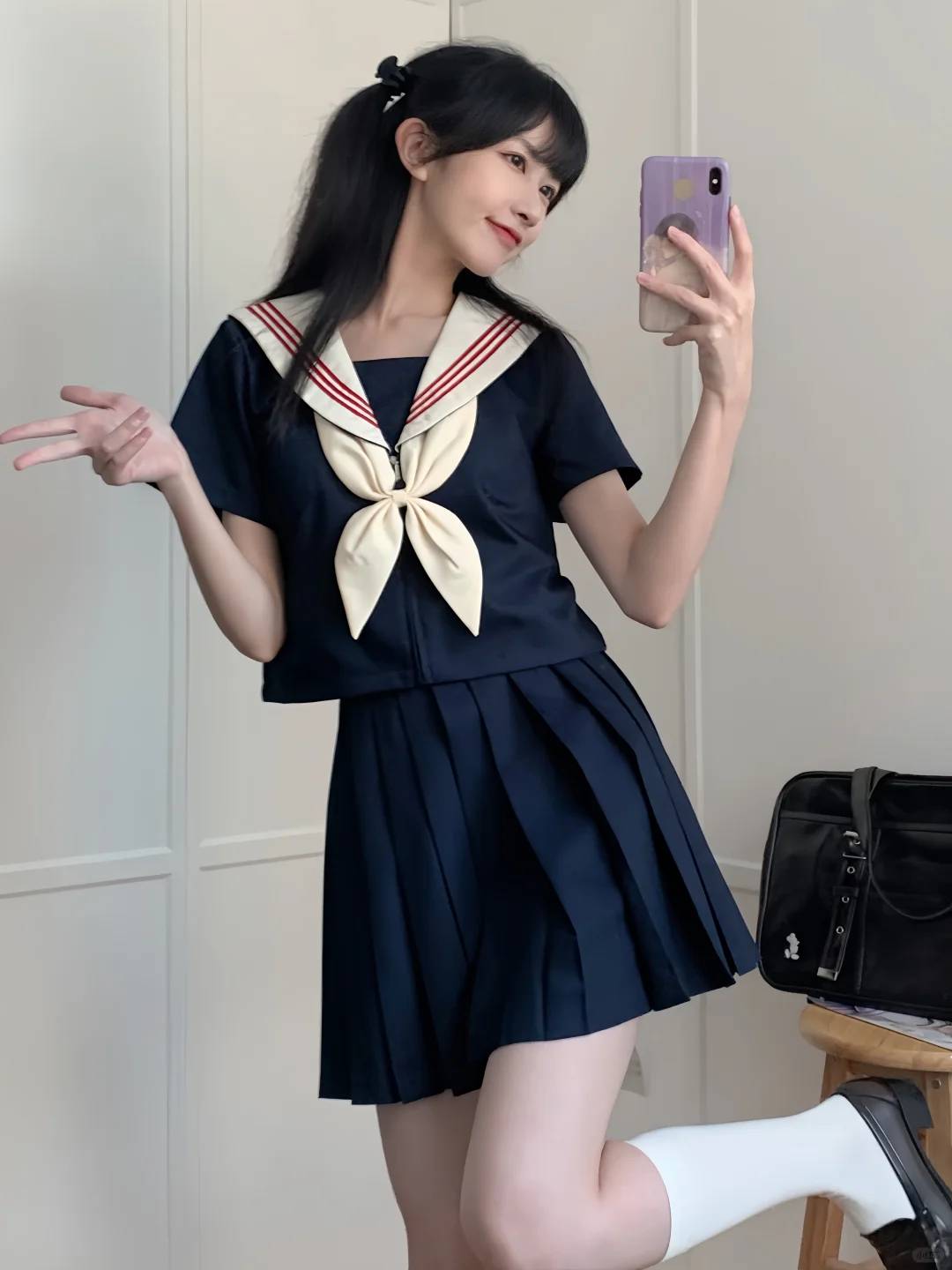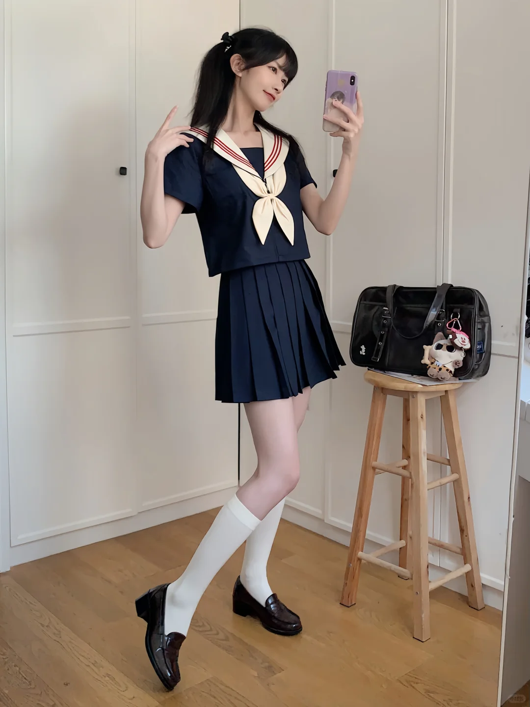 哎呀,奶黄领的JK,简直是青春的诱惑啊!剪刀手配制服,甜度爆表,看一眼就能治愈夏日炎炎。✨