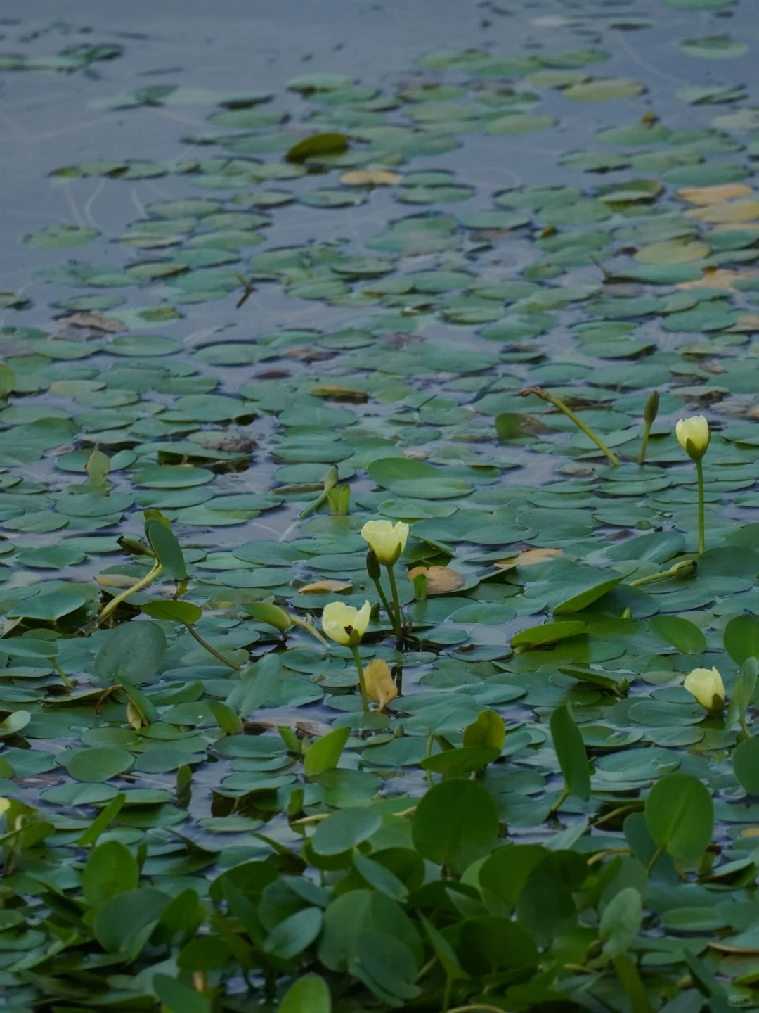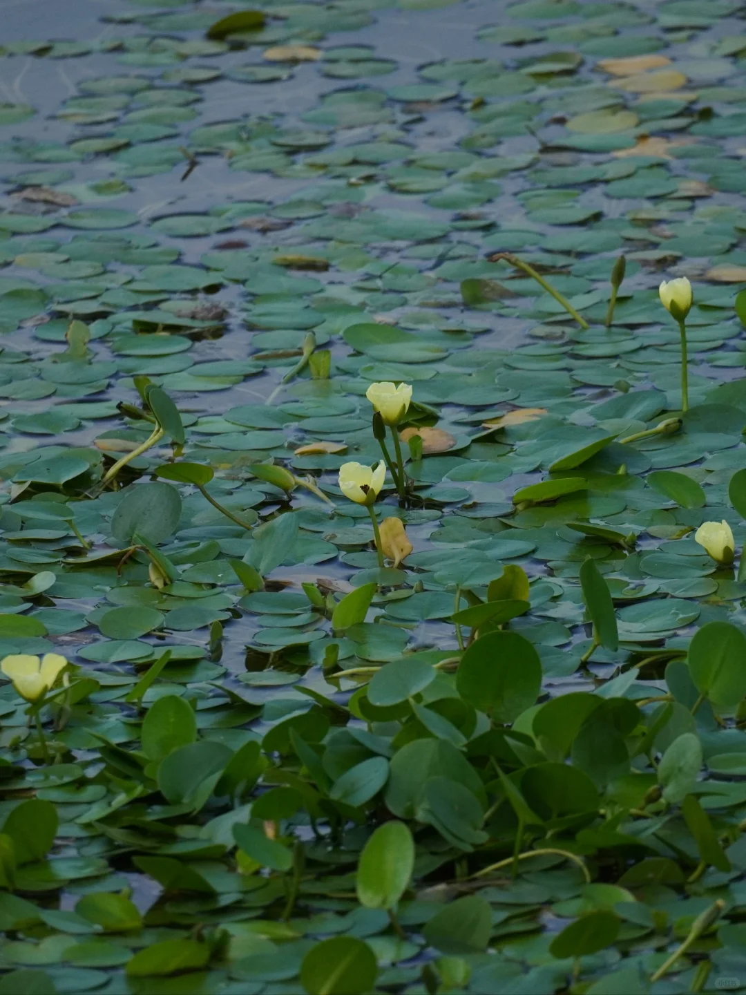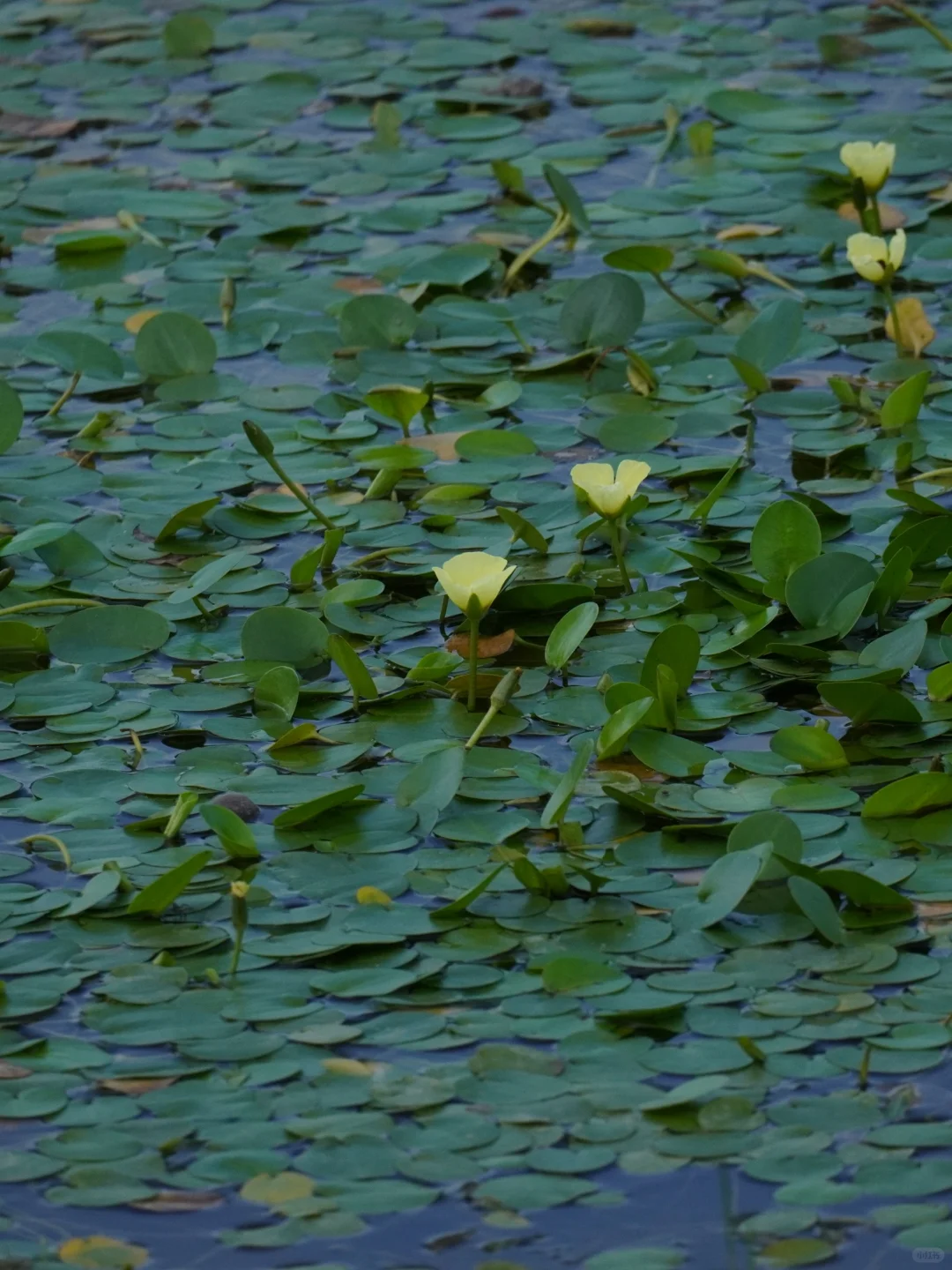 一开始被湖里的荇菜吸引,等喜滋滋拍完发现湖里还有另外一种淡黄色的小花,它便是水金英。水金英花如其名,水指其是水生植物,金则是颜色,英则有花的意思,所以水金英指的便是开在水面的金黄色小花。