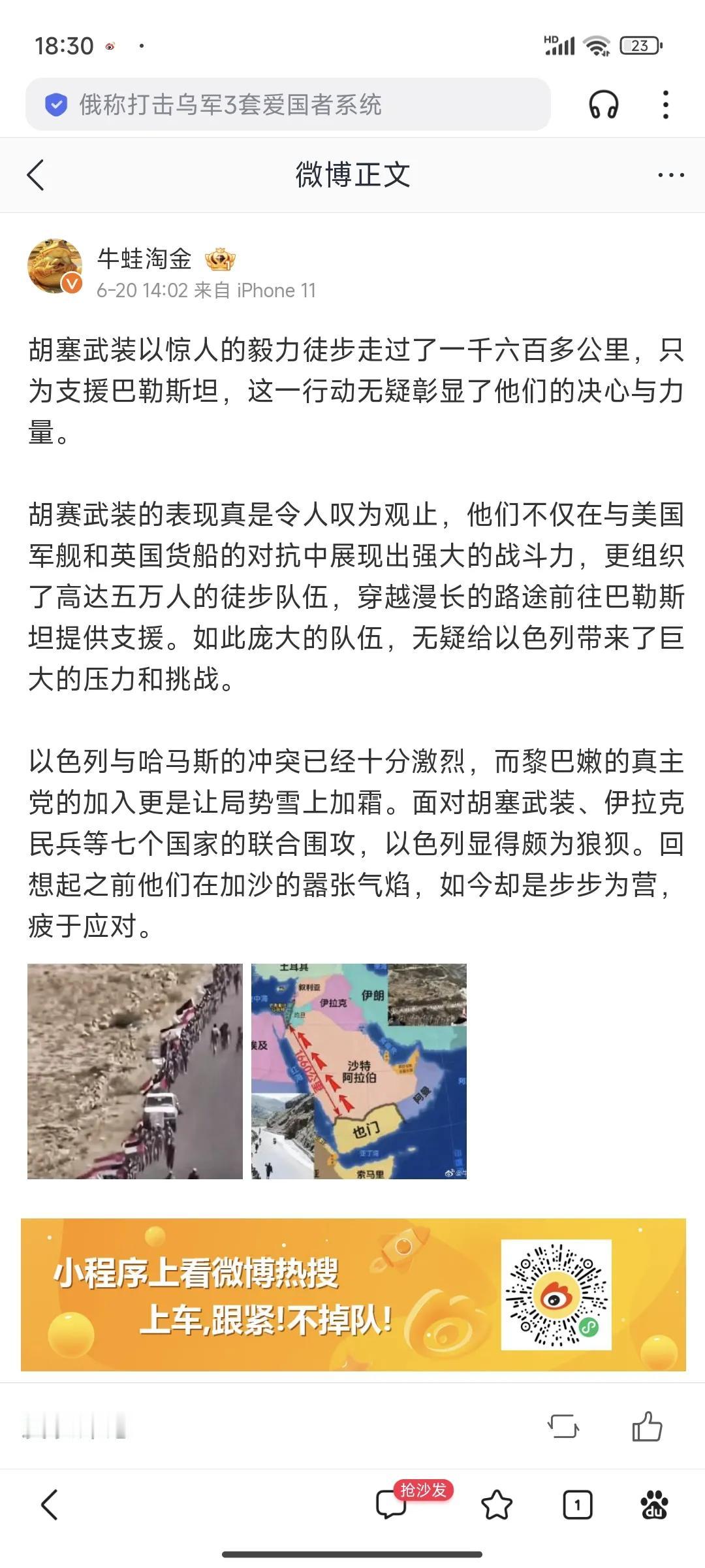 对了,突然想起来一件事,就在上个月,国内许多自媒体报道的也门胡塞武装向以色列徒步进军的数万远征军,现在走到哪里了? 拖鞋都磨破了吧。