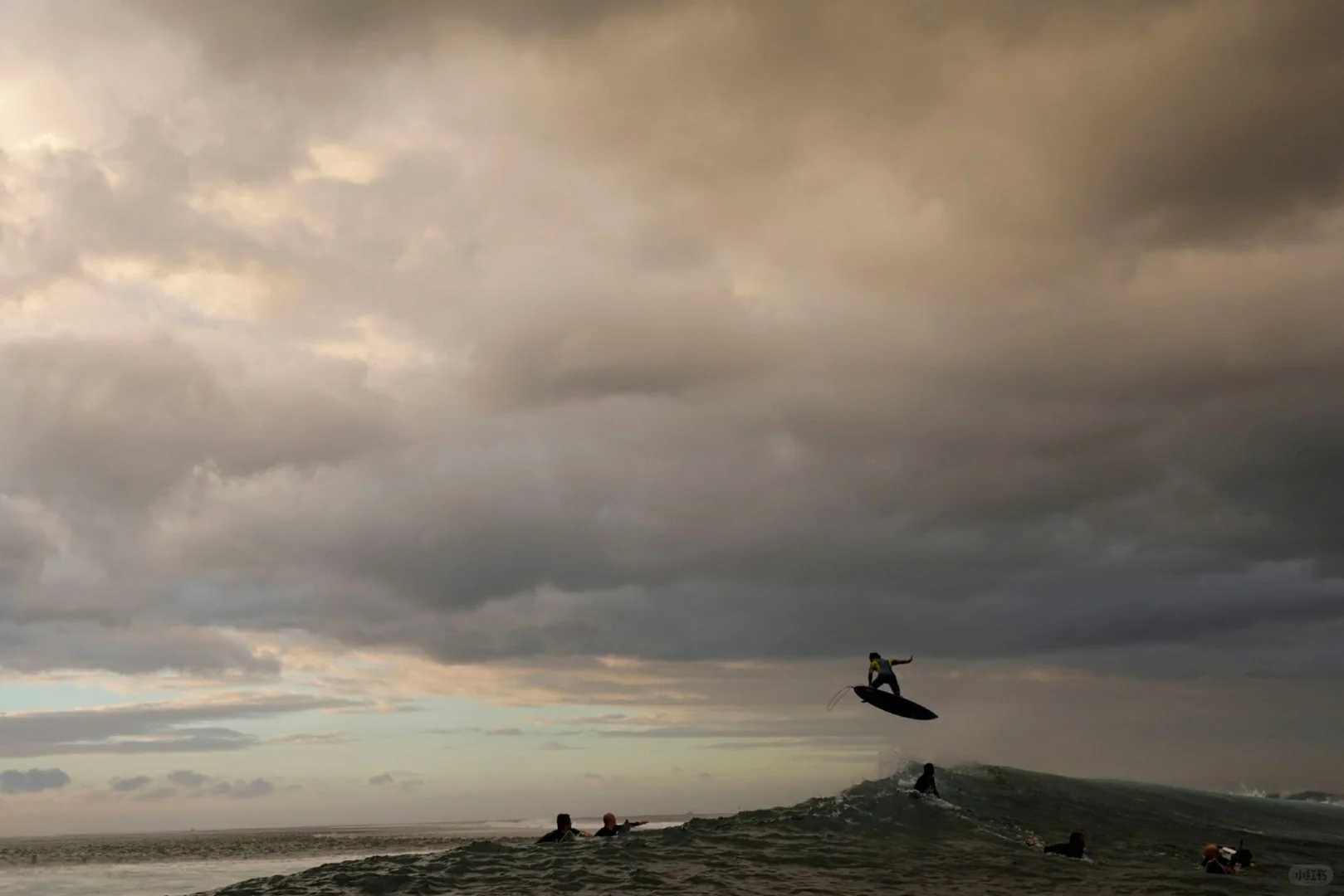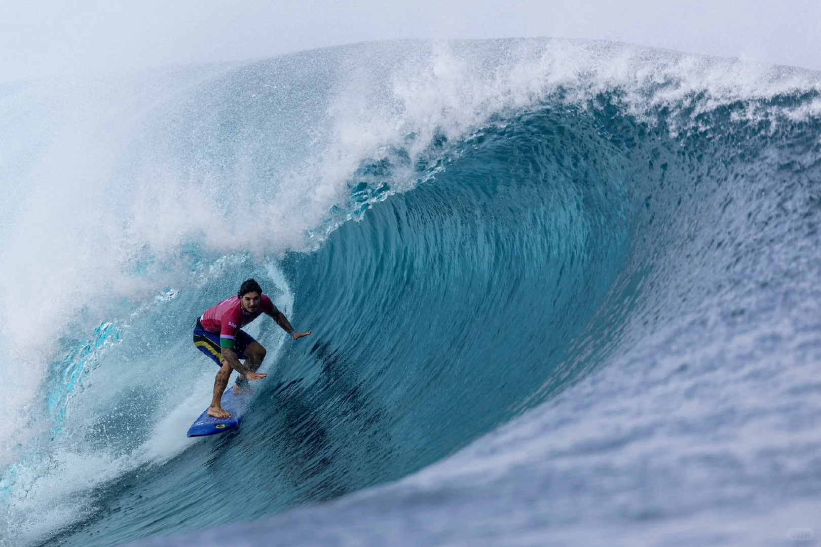 周一,巴黎奥运会冲浪男子短板比赛,三座世界冠军、巴西冲浪运动员加布里埃尔·梅迪纳的一张悬浮在半空的抓拍照片刷爆全网(图1)!