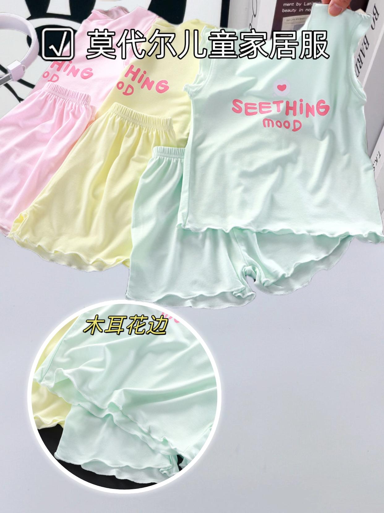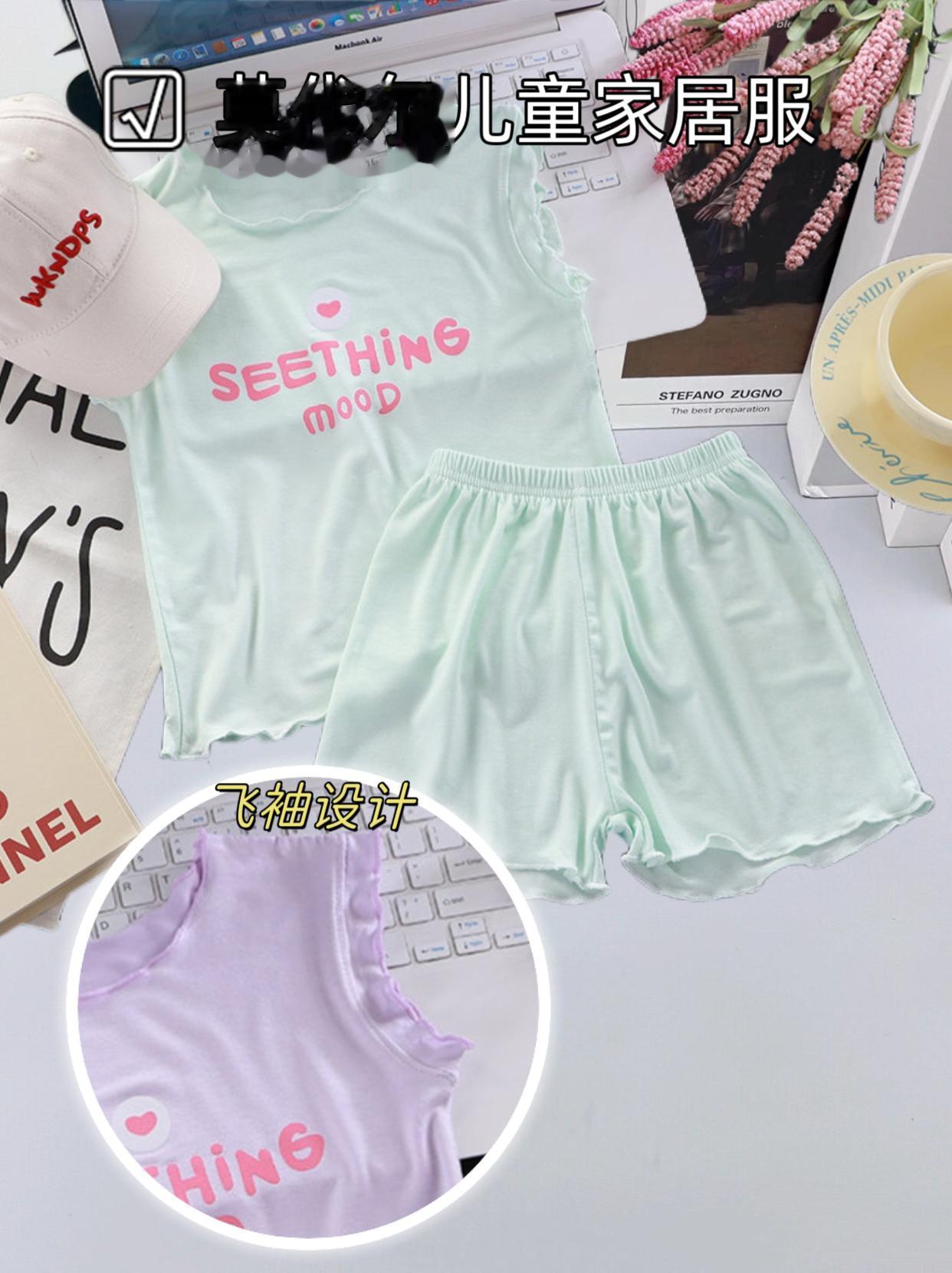 糖果色的儿童家居服。分体套装设计特别方便面料柔软又亲肤好看又好穿到没话说