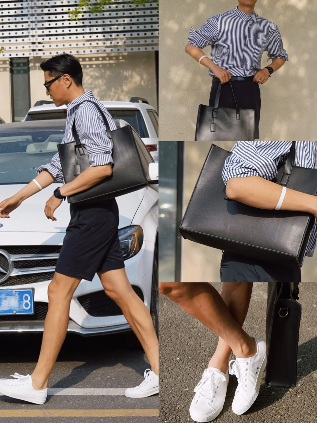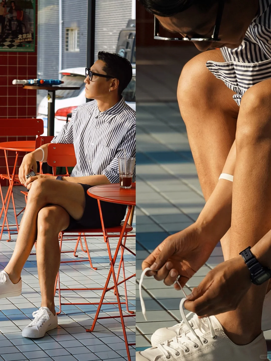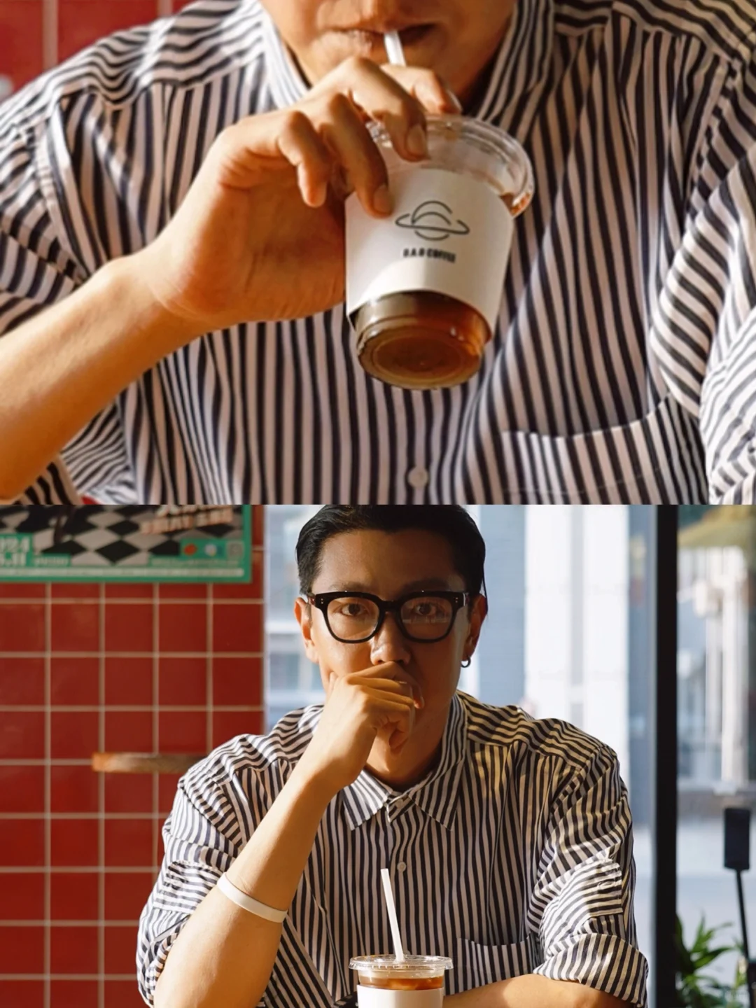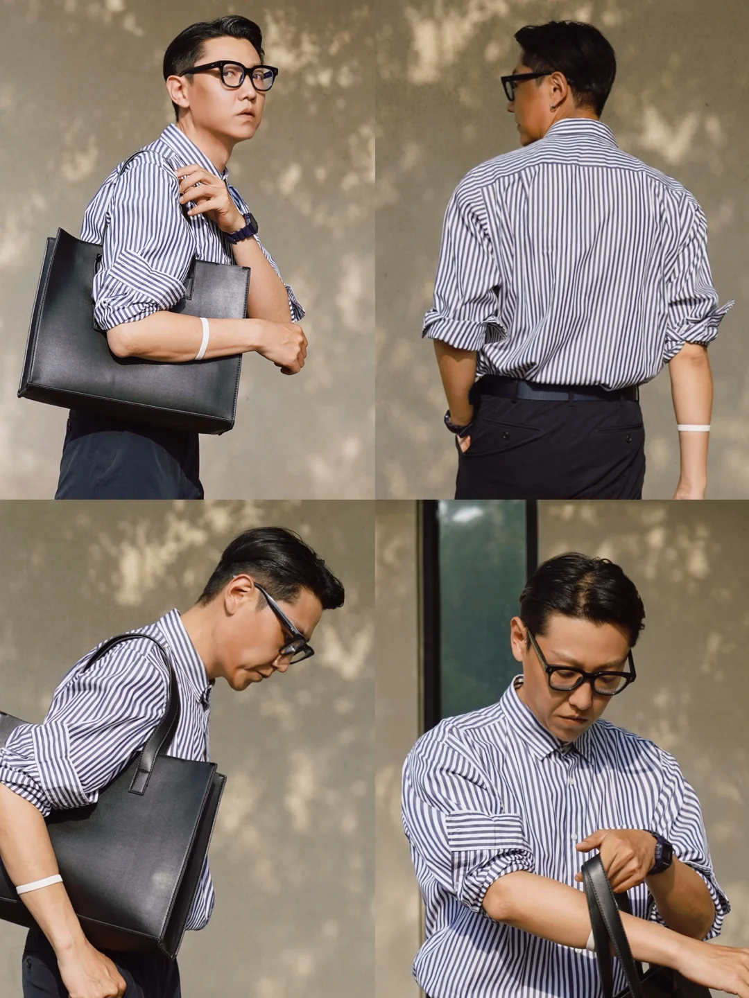日常|舒适|通勤 👆🏽今天主打藏蓝色|用一杯冰美式☕️奖励一下一天的忙碌!蓝白条纹衬衫搭配藏蓝短裤,尊重一下工作日,当然也少不了穿上叔叔最爱的小白鞋。下班快乐!