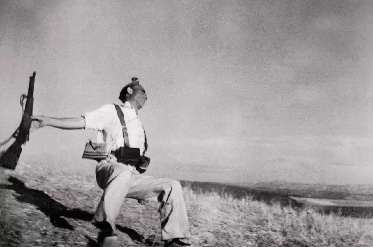 卡帕的浪漫主义手法和英雄主义形象容易让人忽略他作品的另一面。他的名言:“如果你的照片不够好,那是因为你靠得还不够近。”这句话有着双重的含义。意思是说,不仅要在行动上,而且要在情感上贴近拍摄对象,两者同样重要。1936年9月,卡帕在阿拉贡前线拍到了这名西班牙共和军战士临死的一瞬,这张照片成就了他的声名。关于这张照片是否“摆拍”的争议,直到2002年才最终被几位参与过那次拍摄工作的人力证“清白”。