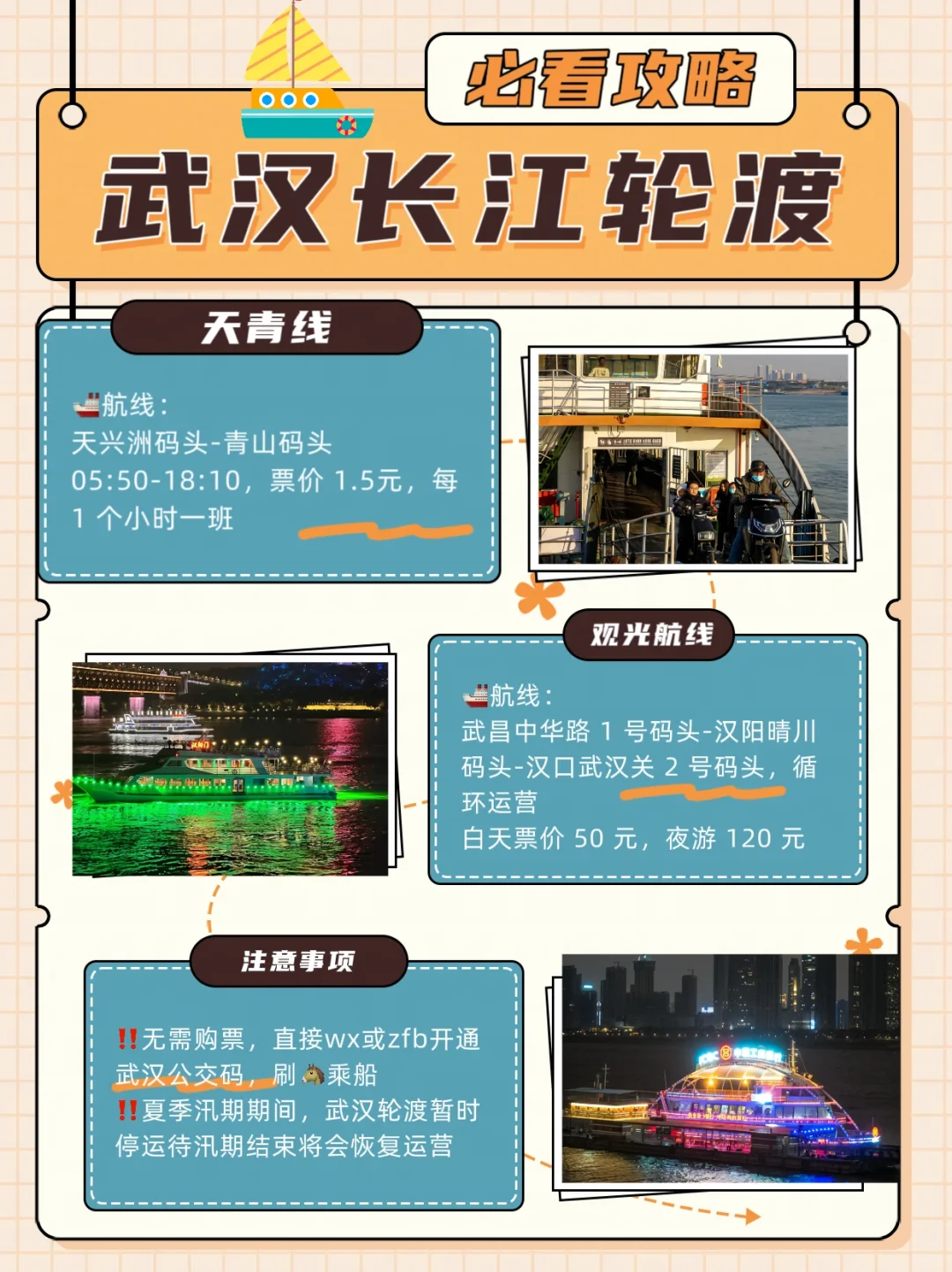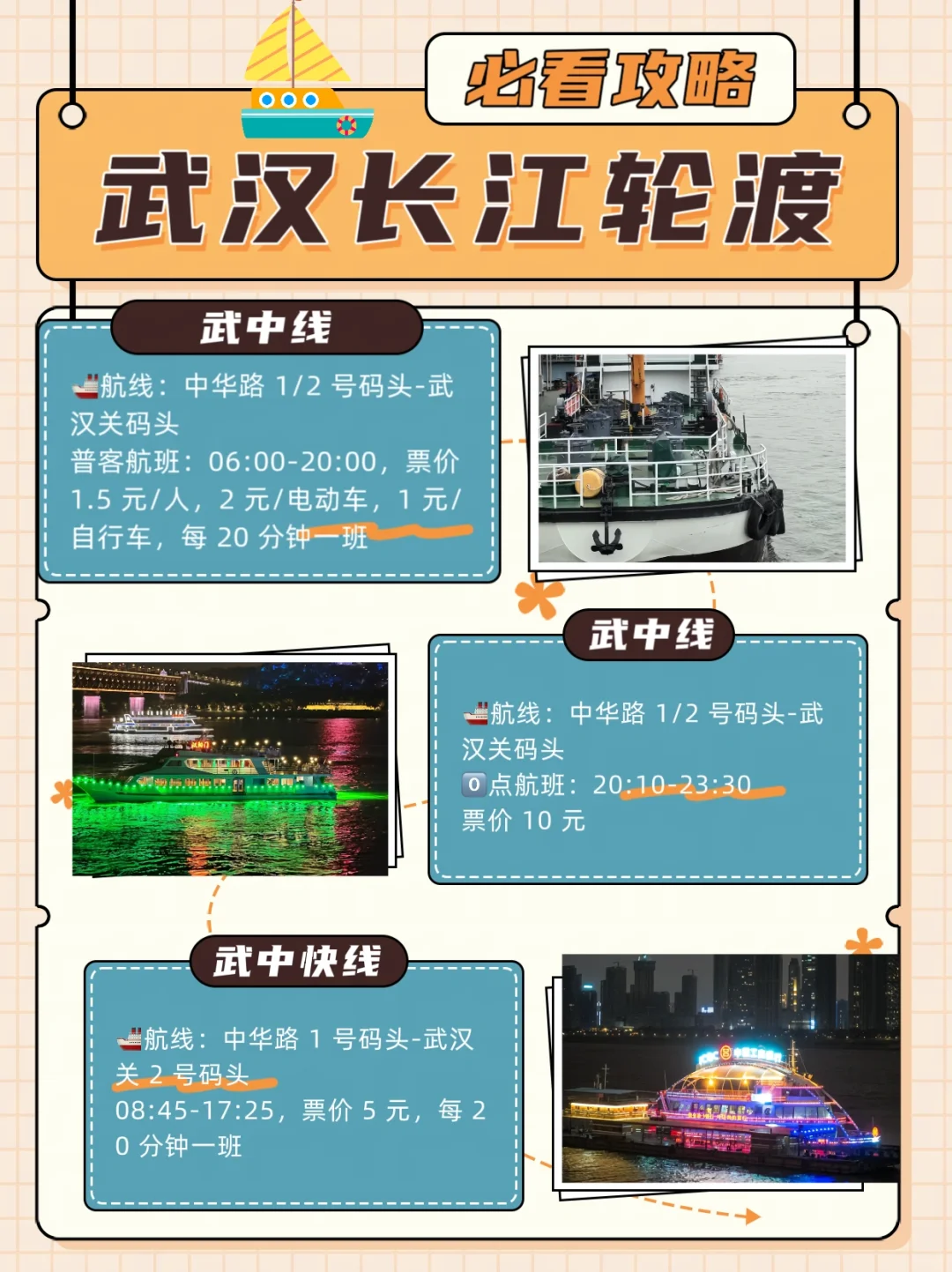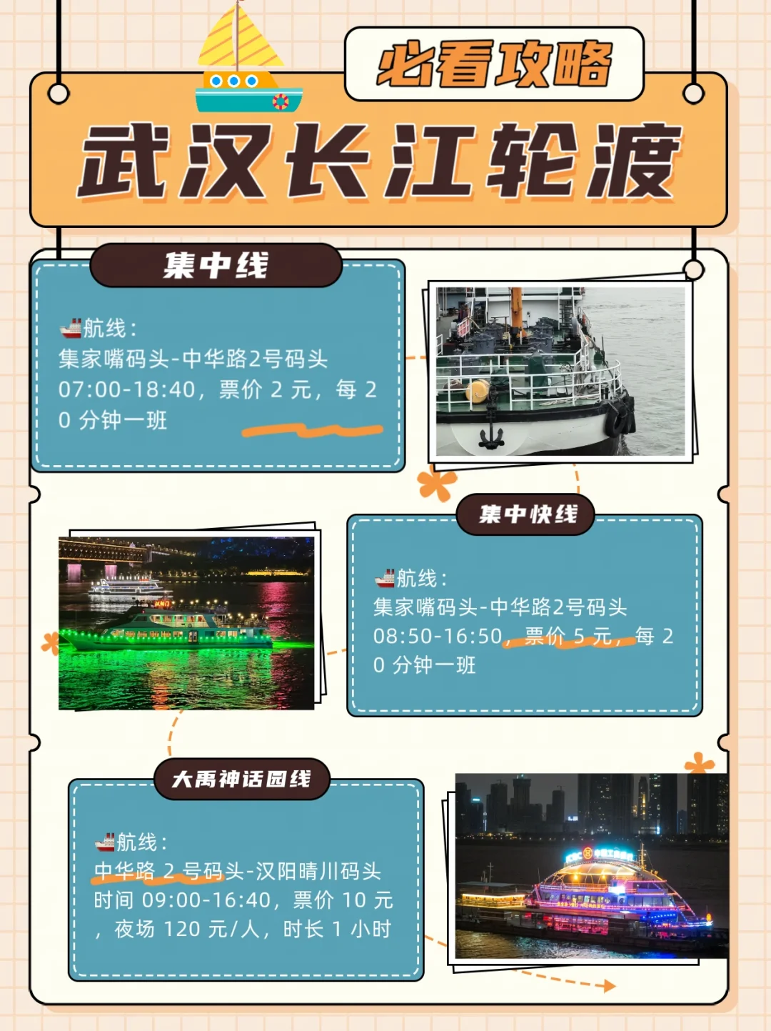 🚢航线:武昌中华路 1 号码头-汉阳晴川码头-汉口武汉关 2 号码头,循环运营