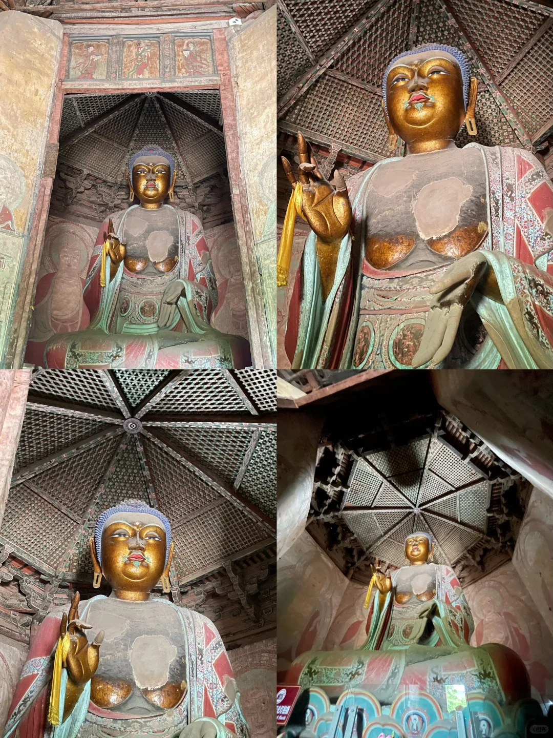 1.目前只开放一层参观,里面有一尊巨大的释迦牟尼的彩绘佛像,2层以上已不对外开放,广场上有上面楼层的图片🏞