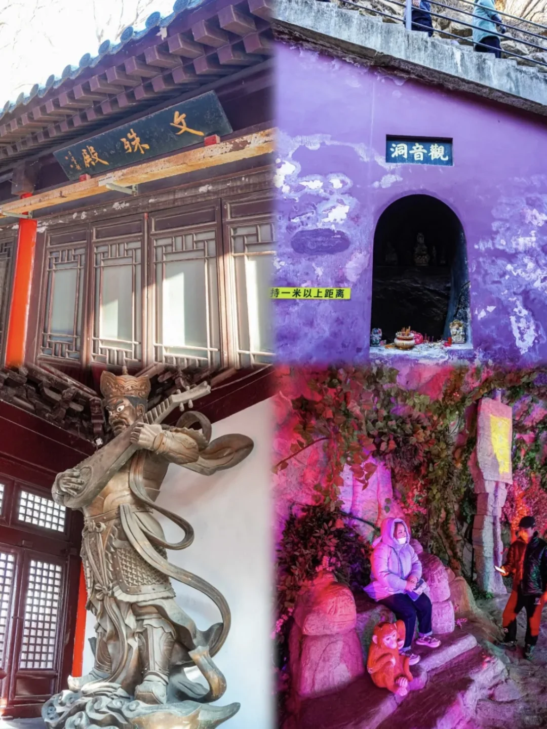 西游记的取景地之一,位于连云港的花果山 是每个来连云港旅游的人必打卡的地点🗽 山上🈶各种与西游记相关的名胜古迹 大圣🐒元素满满,山前有很壮观的大圣湖🏞️和阿育王塔 入口处有梦幻西游巨型雕像🗿以及超级大的卡通版悟空头像可供打卡 天气好时会有猕猴🐵出来 🚌景交车: 到水帘洞20💰 到玉女峰25💰 🚩tips: 1.建议乘车到水帘洞即可,下行🉑步行下山 2.乘公交不要在花果山山门下车,直接坐到花果山风景区,不然又🉐走2公里