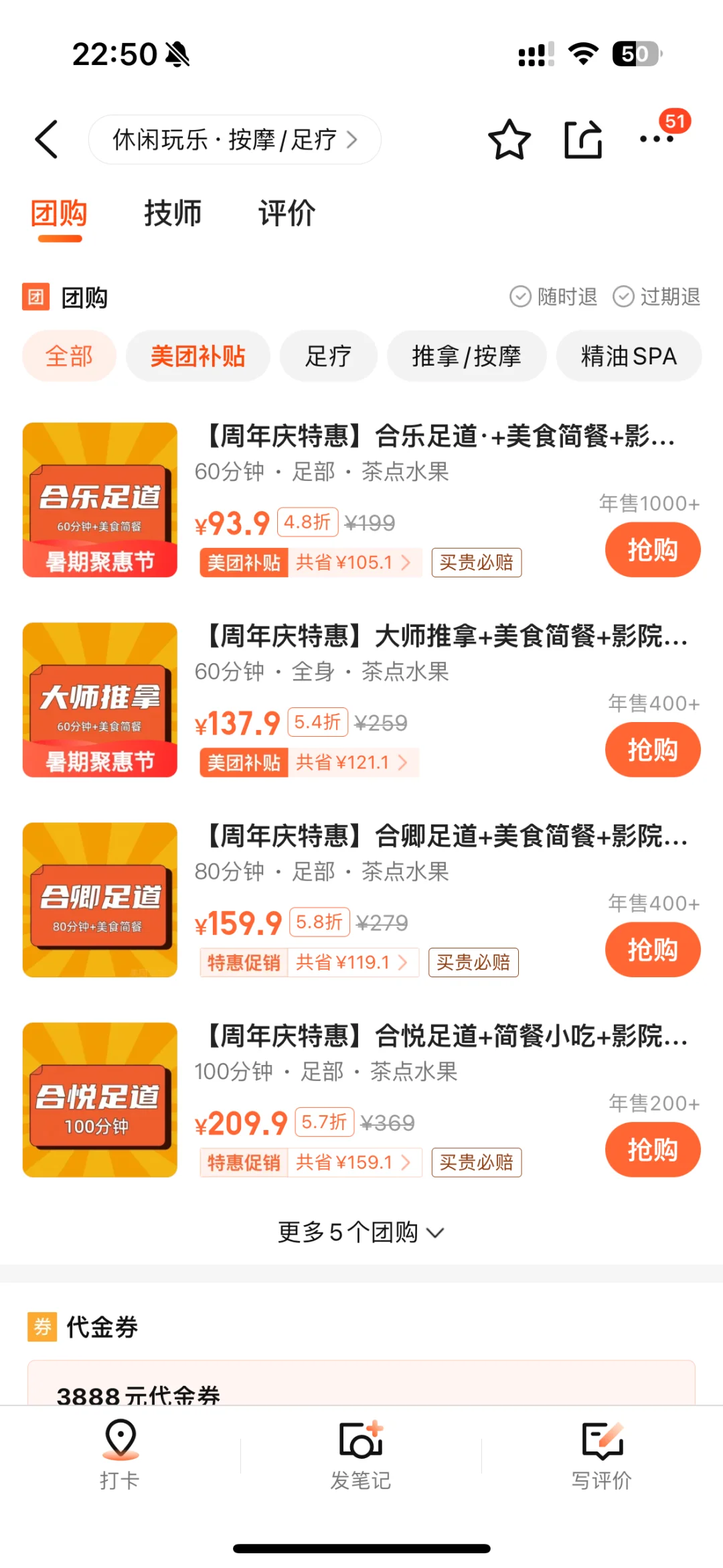 60min足疗➕美食➕影院才93!! 60分钟大师推拿➕美食➕影院才138r!!