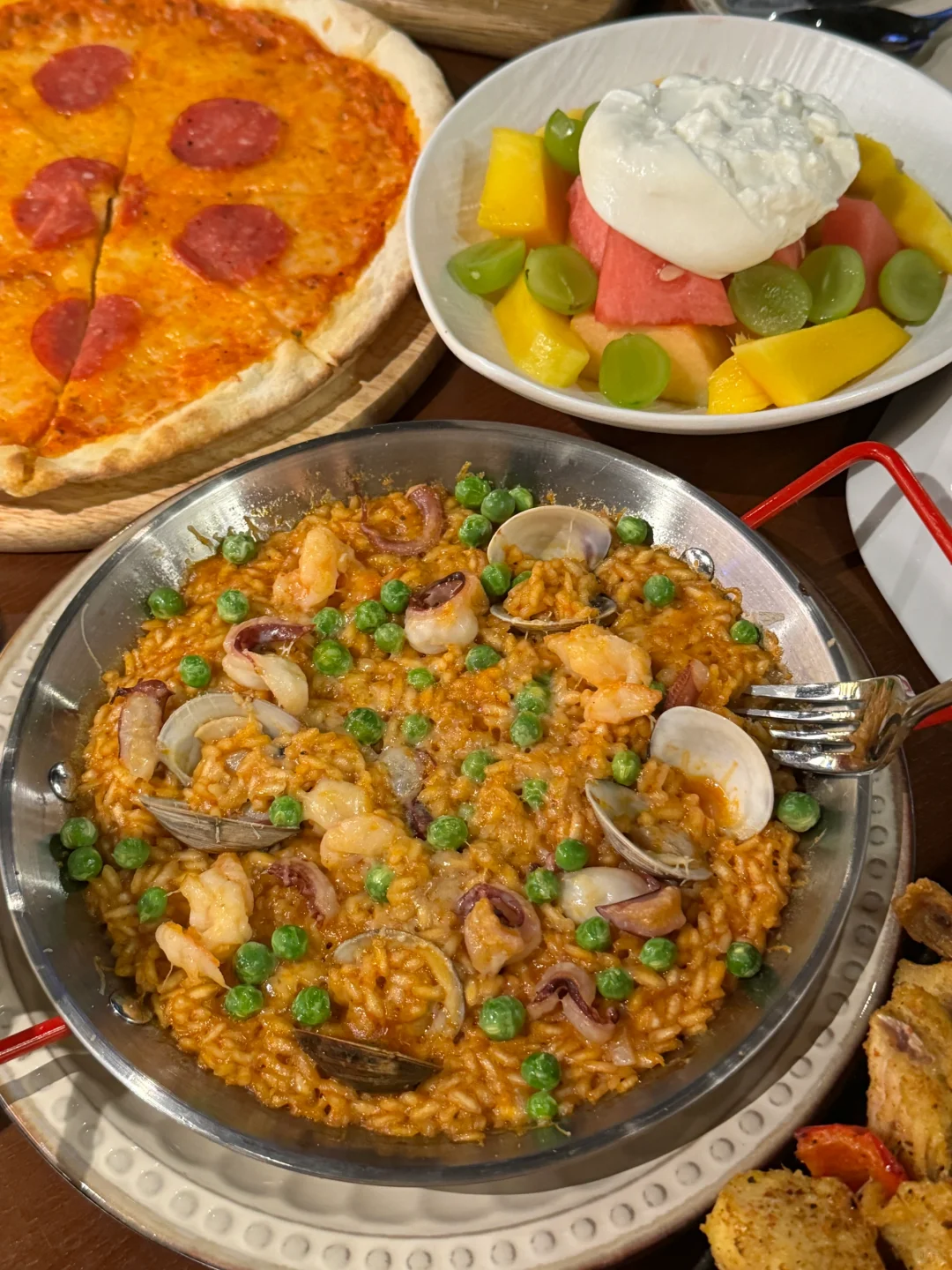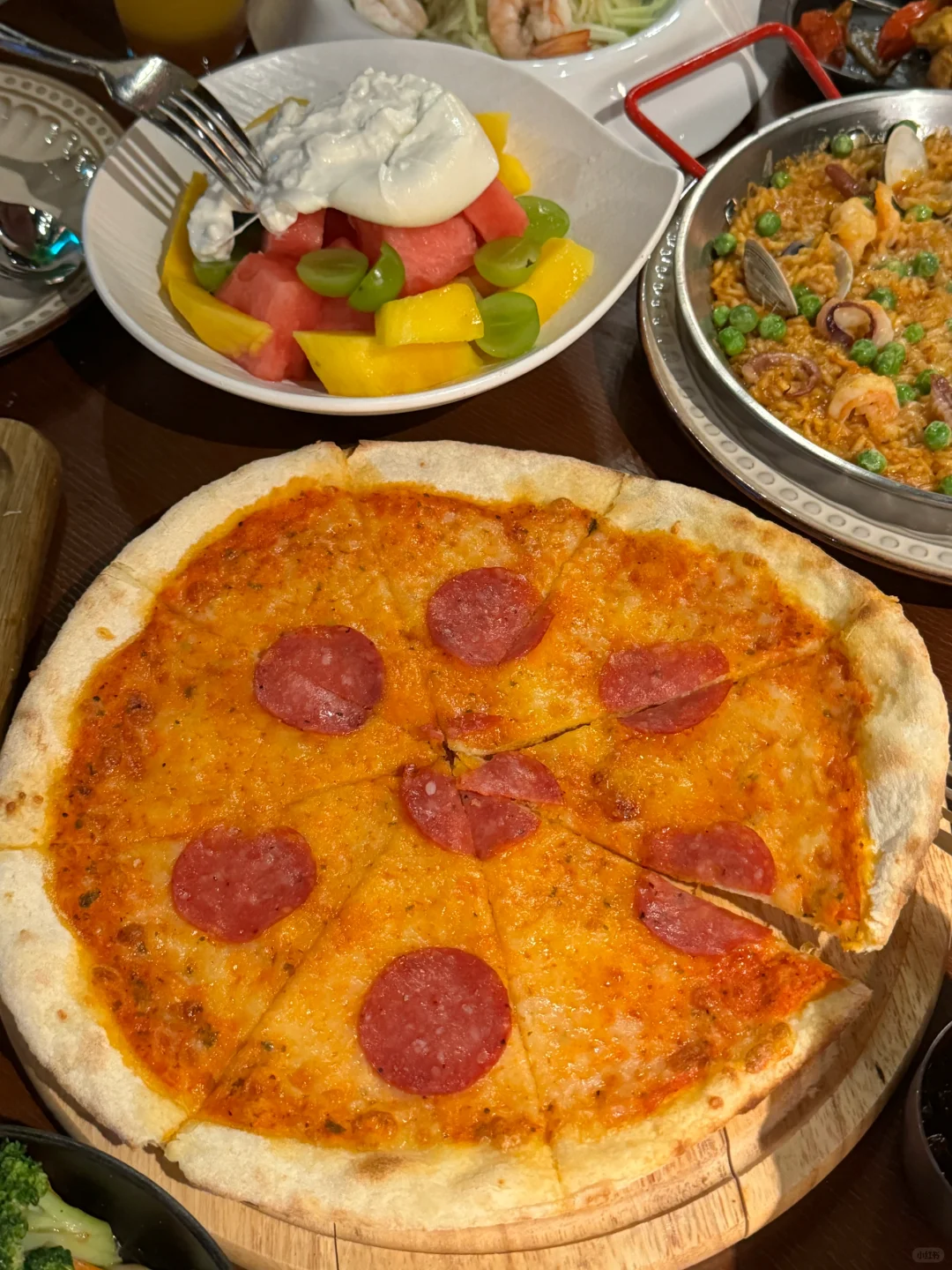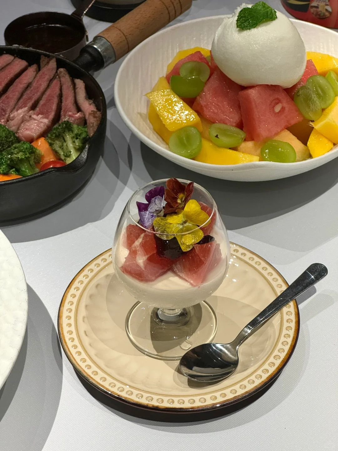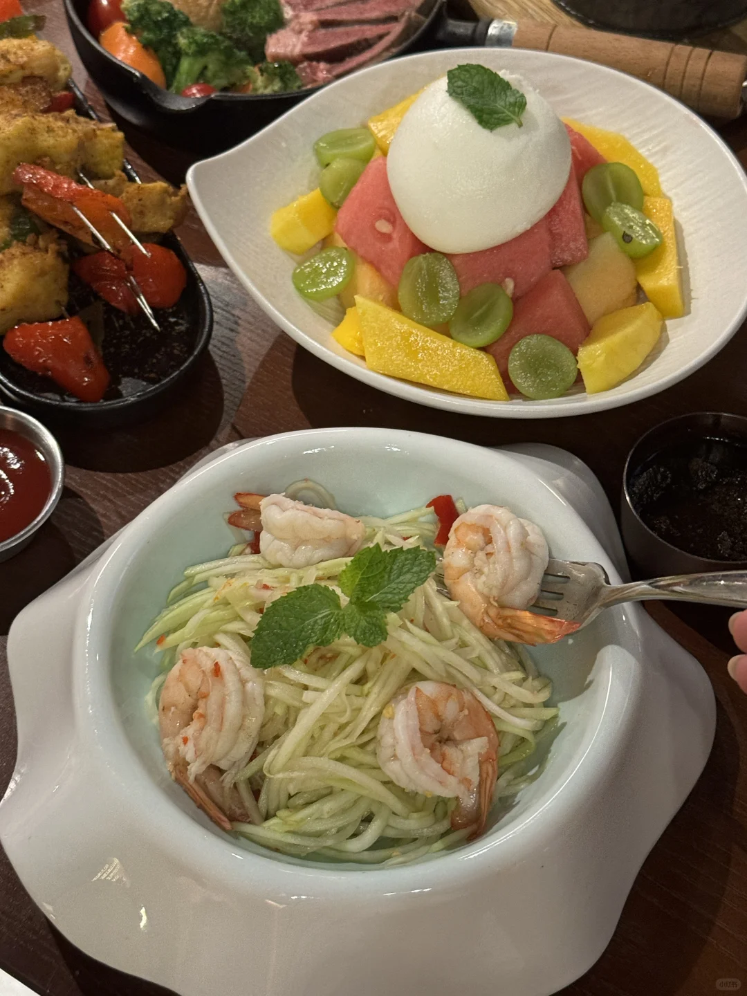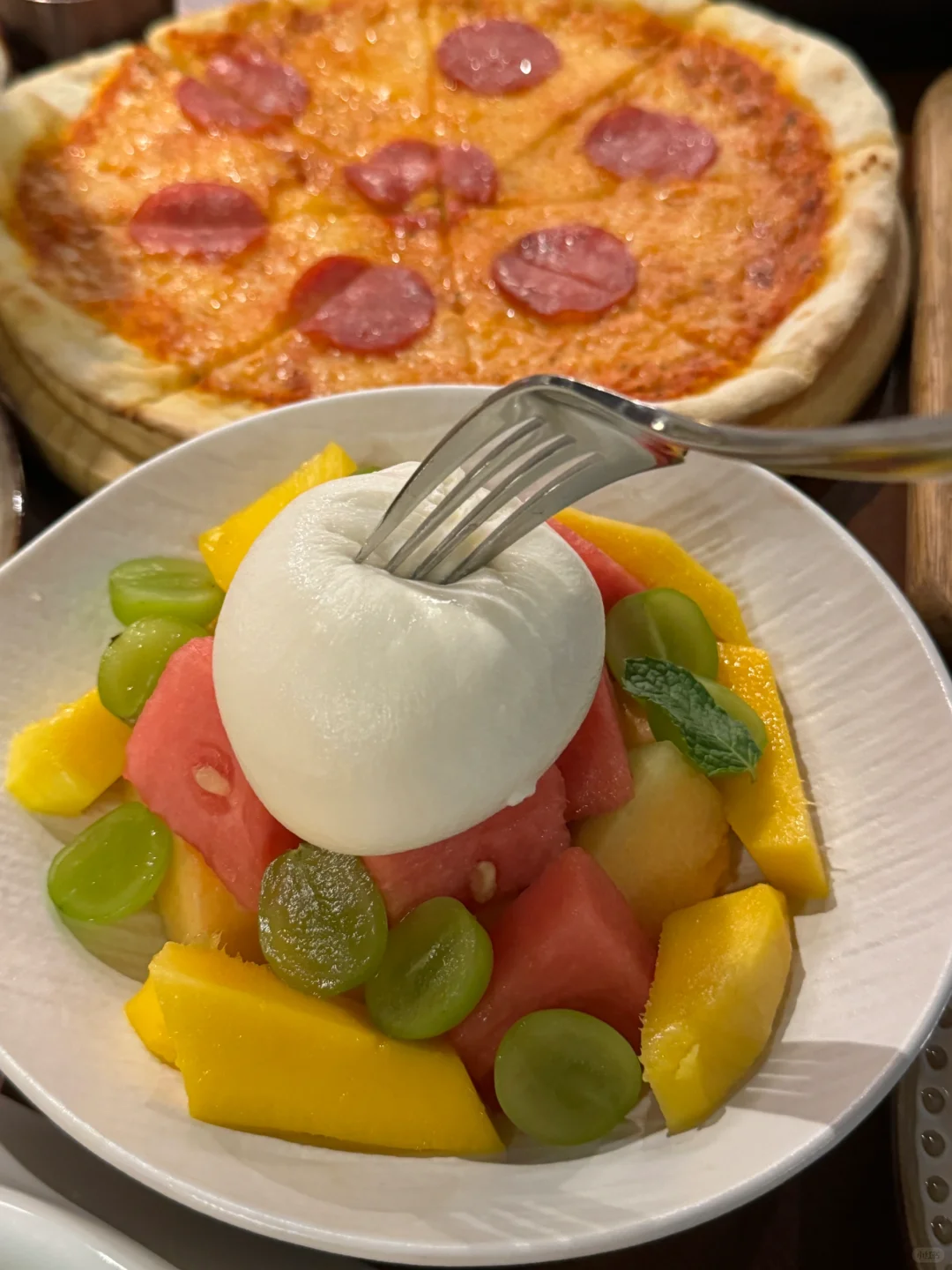 南七新开的!!空间超级大的餐酒吧☝🏻约会 聚会都合适诶💕 餐品精致又创意~而且真的不贵!! 水果配布拉塔芝士✔️搭配的时令水果都特别甜 布拉塔芝士和奶包子一样 奶香特别浓郁 配水果好搭阿