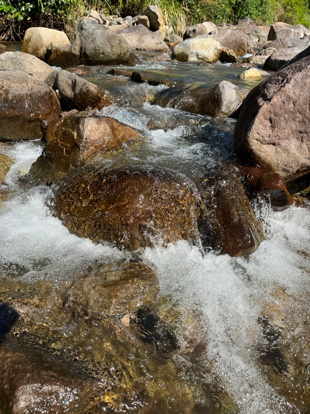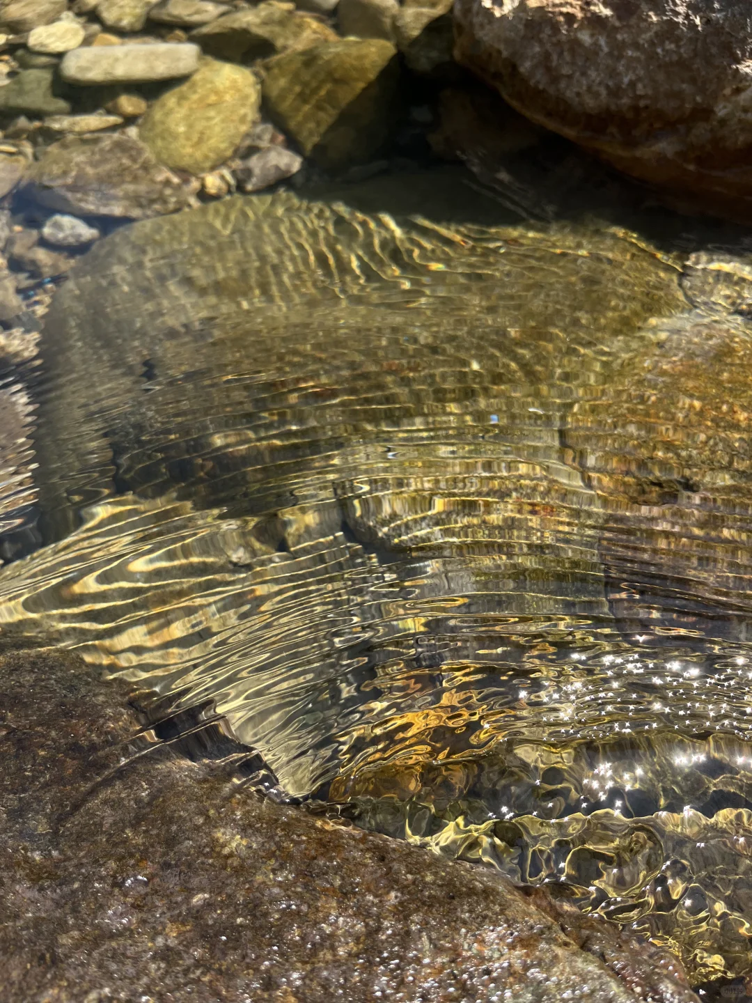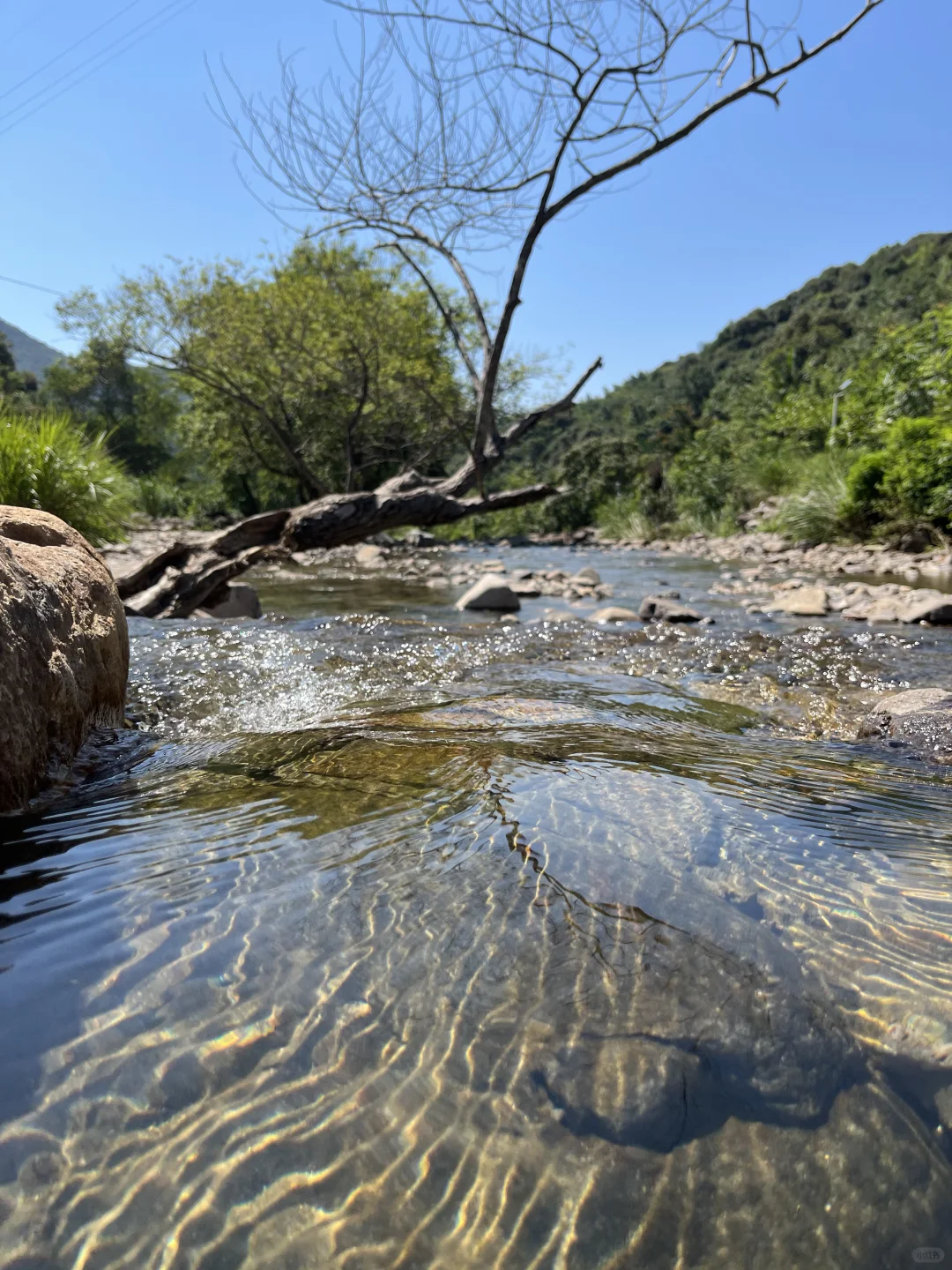在溪水里玩了一个小时,摸清情况后,老公换了泳衣,选择一处水深约1米的地方简单舒展了一下筋骨,还有溪水的冲背享受,真不错。