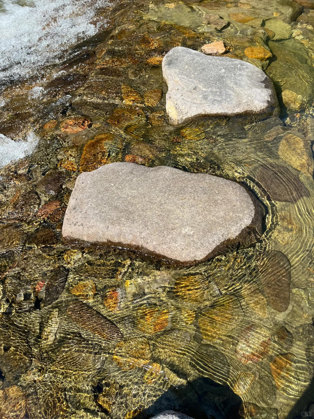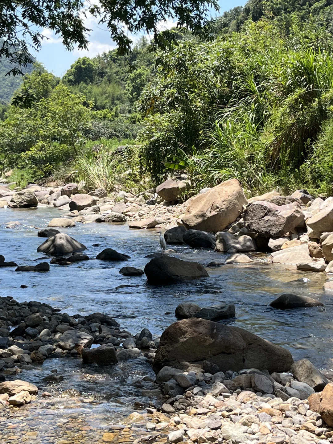一路还碰到白鹭、蜻蜓、蝴蝶。不过水过于清澈,几乎看不到水里的鱼,直到后面我发现还是有鱼,可惜鱼也进化的半透明,在水里非常不显眼,难怪寻觅小鱼的白鹭伸长脖子做了半天的望夫石也无一收获,好可怜。
