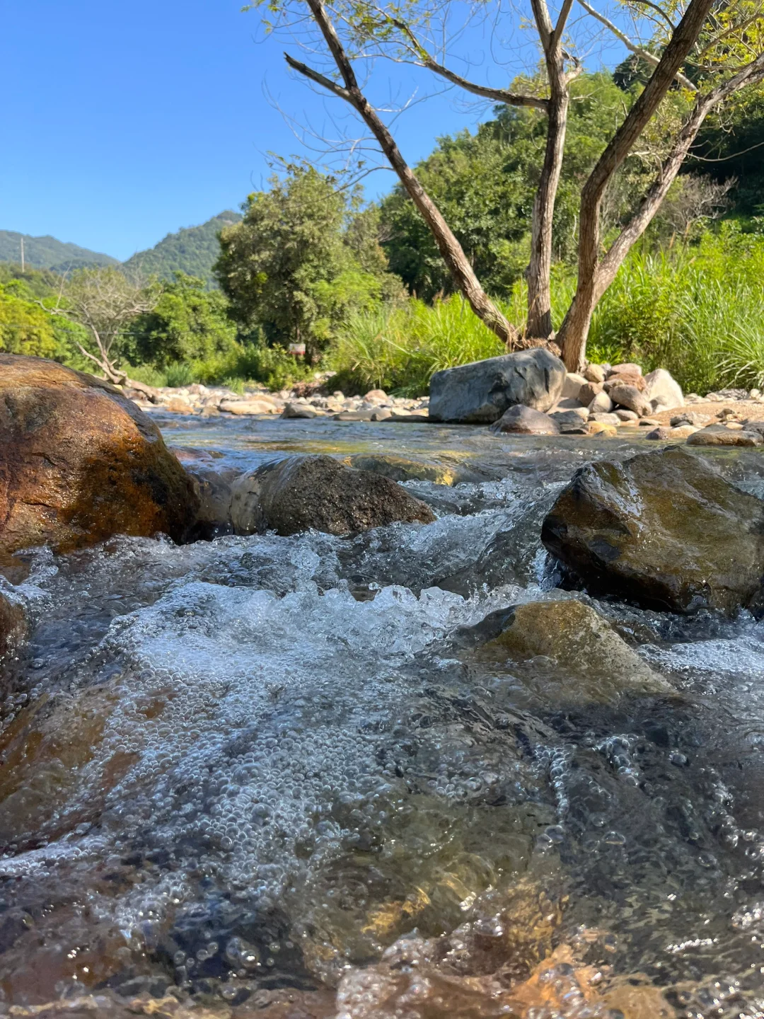 半个多小时到达,车停在农场门口,步行进农场,水非常清澈,我们步行约数百米,到溪边停留。