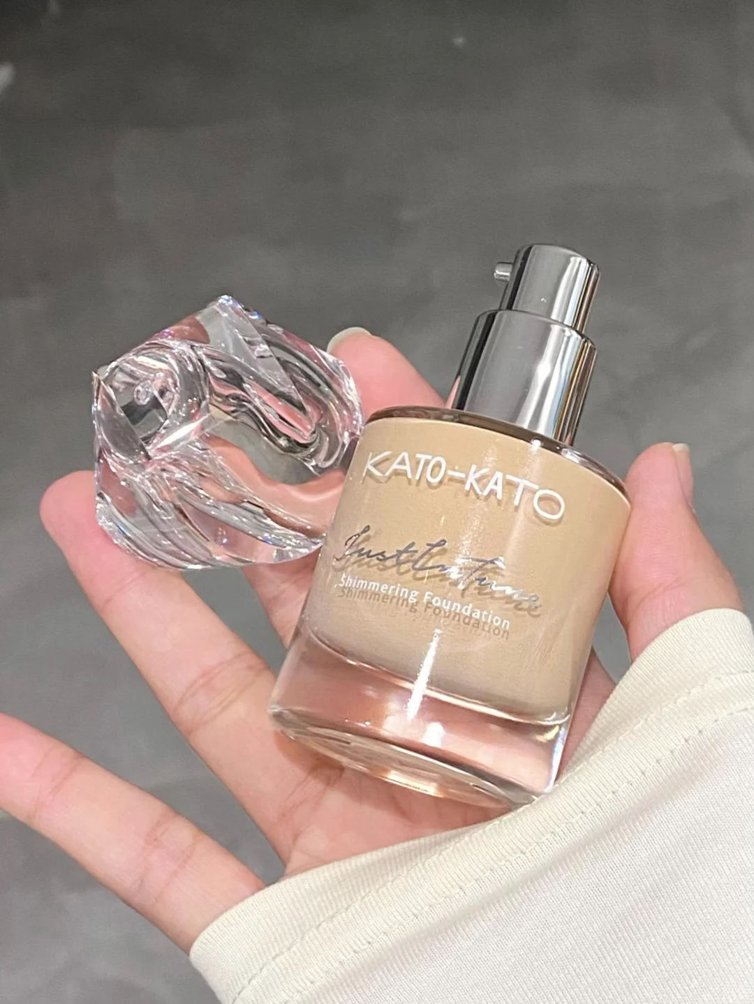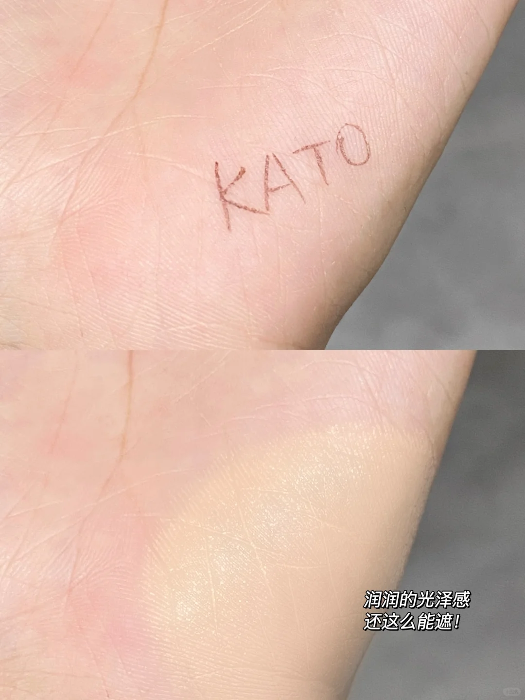 kato前段时间出的新品 我多少也是有点相见恨晚了 这外壳就透亮透亮的好好看! 夏天直接被kato粉底液硬控一整天! 是精华质地!润润的超级好推开 新手随便拍拍也能上得很服帖 三两下就上均匀了 遮瑕力属于中上水平不需要另外遮 整体妆效是带点微微光泽感的原生肌即视感 和皮肤融合得好好诶! 又润又薄又能遮真有你的 夏天一整天带妆下来 就只有额头和鼻子两边一丢丢泛油光 整体妆面很完整 属于越夜越美丽那挂的 喜欢妈生感的直接给我🔒!!