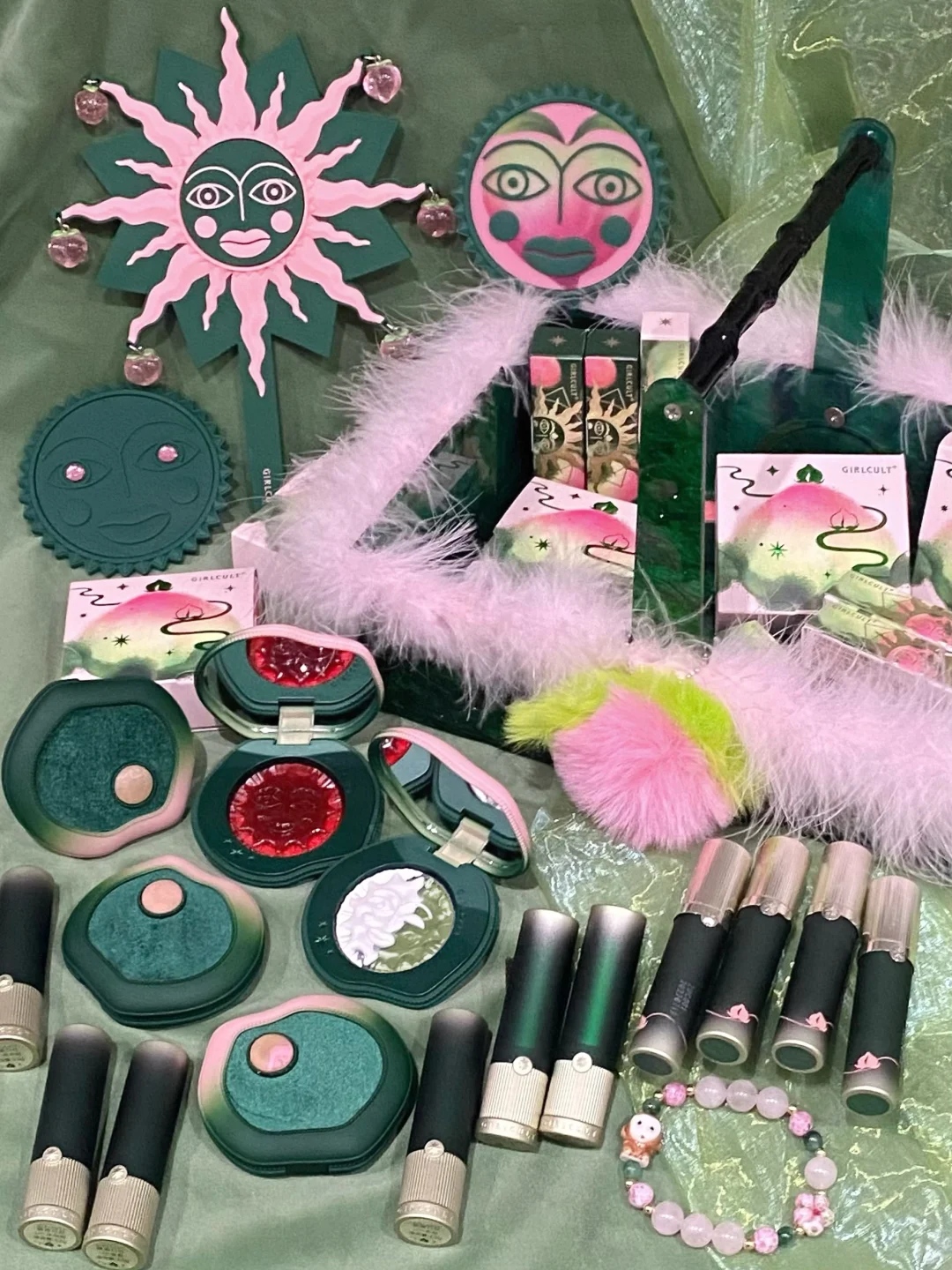 仙桃粉搭配松绿 好像进了桃花源