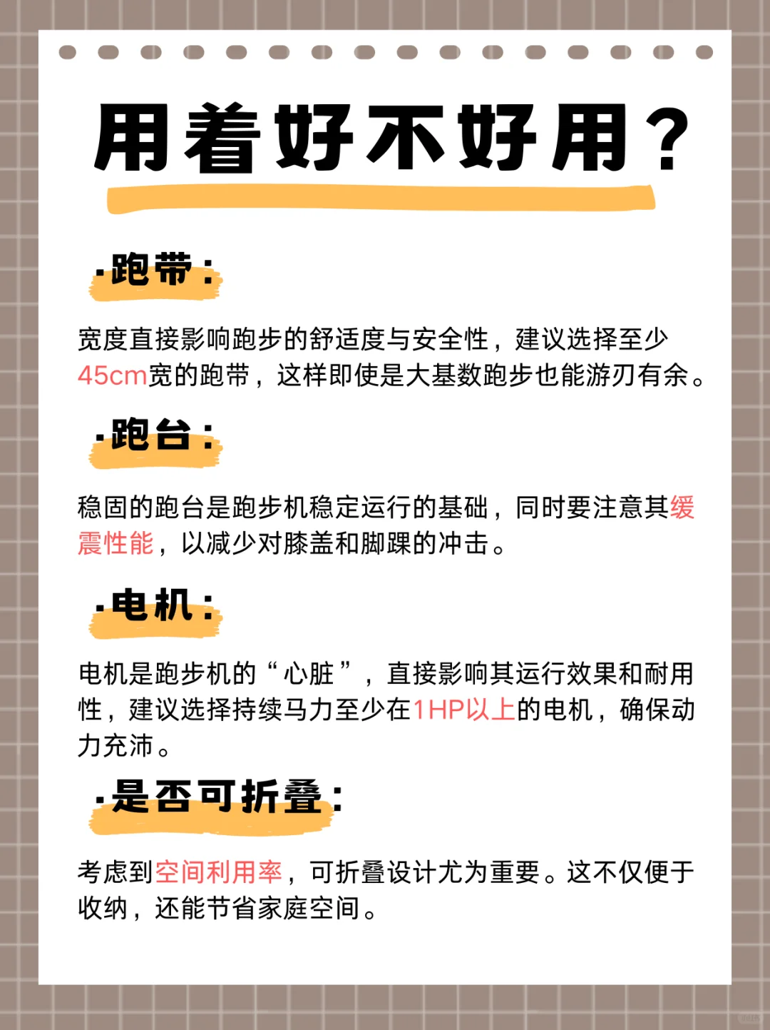 电机:电机是跑步机的“心脏”,直接影响其运行噪音和耐用性,建议选择持续马力至少在1HP以上的电机,确保静音且动力充沛。