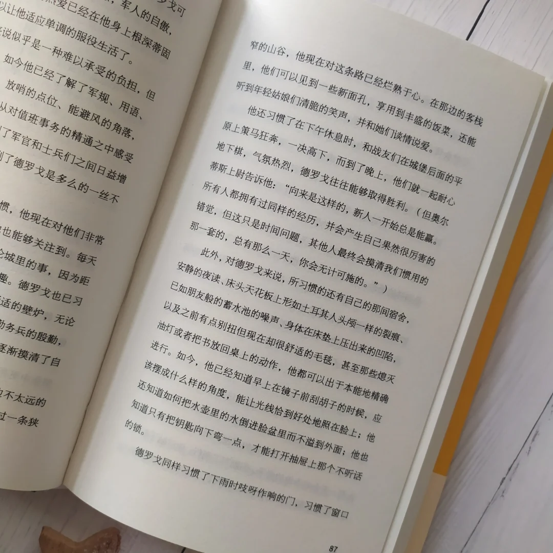 书中一段讲道当所有的军官都想调离的这里的时候,德罗戈是一下子完全洞察了这里的一切。几乎所有的军官们都申请了调任,他们焦虑的等待着,忘记了过去的忧虑。很显然,过去的希望,对战争的幻想,对北方敌人的期盼,这些只不过是给自己的生活强加一定意义的借口罢了。在这里就像被流放,因此需要找到某种出口,需要寄希望于某种东西。于是有人最先想到了这一点,于是他们便谈论起鞑靼人……这里生命的意义,存在的意义,一下子被他讲了出来!