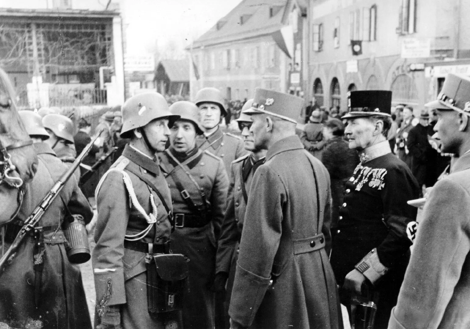 1937 年,小胡子认为吞并时机成熟。1938 年 2 月 12 日,小胡子在贝希特斯加登约见许士尼格,迫使他签署听命于德国的议定书。许士尼格准备公投决定国家前途,小胡子却命奥地利纳c分子赛斯-英夸特取消公投。